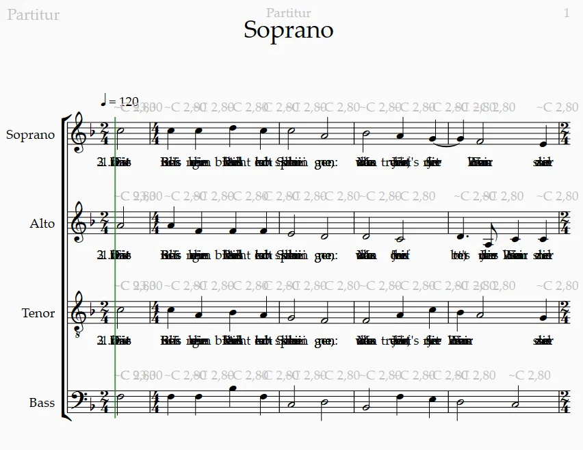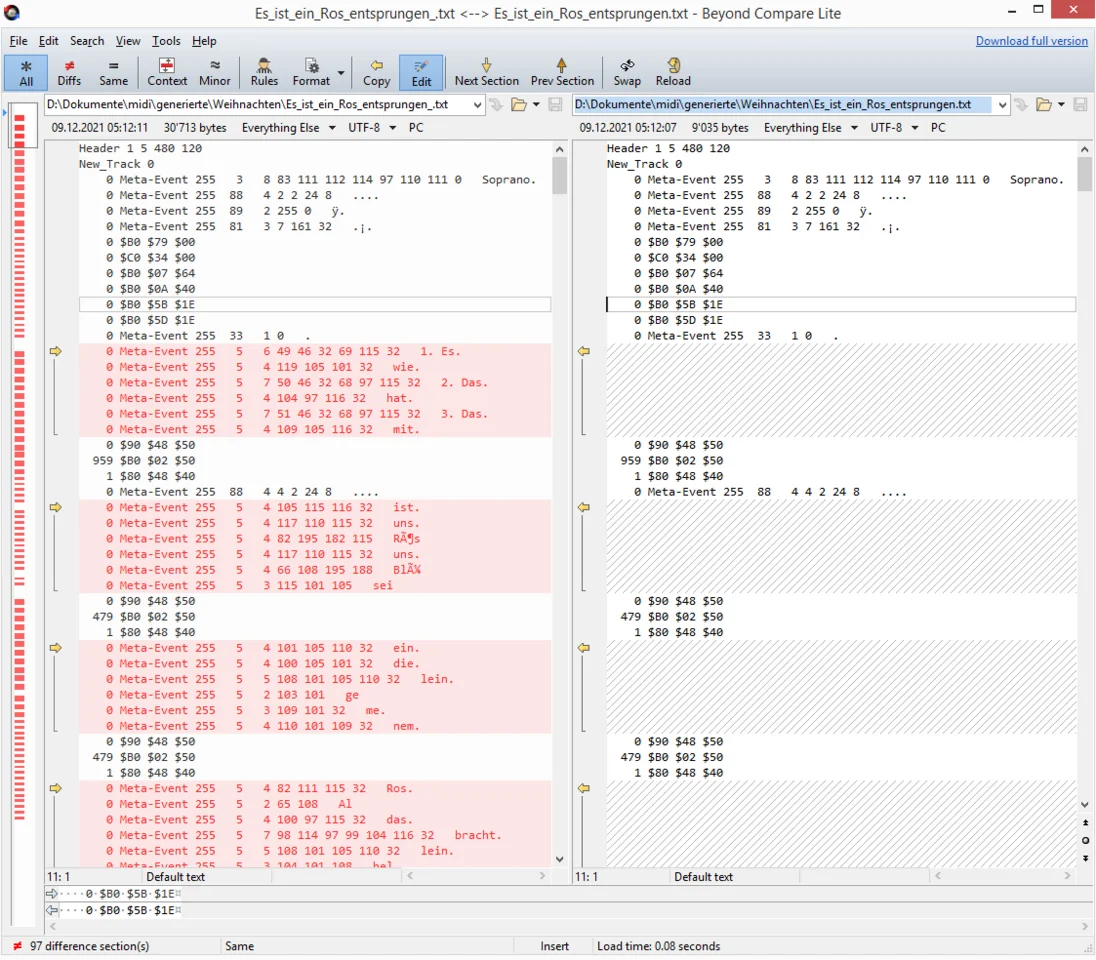 Die Partitur MuseScore_Original exportierte ich als Midi-Datei. In dieser Midi-Datei fügte ich die Lyrics mit meinem InsertLyrics-Programm ein, weil MuseScore beim Midi-Export Lyrics nicht unterstützt.