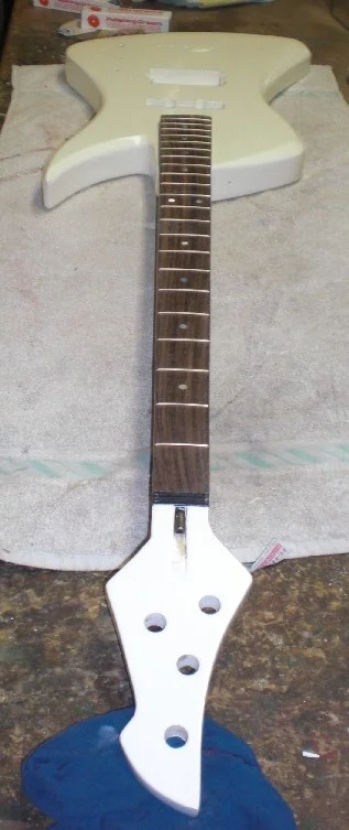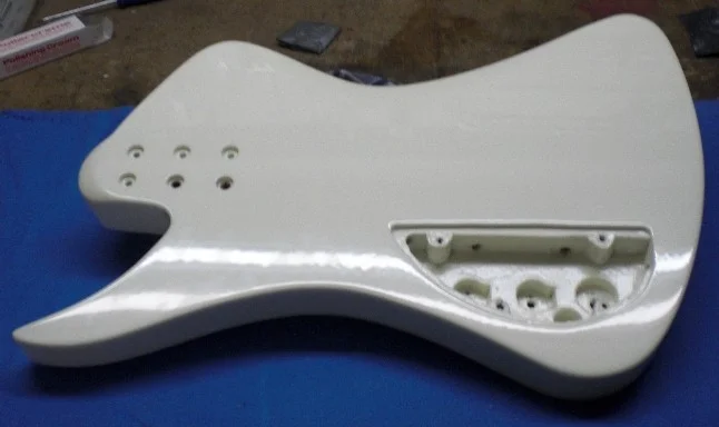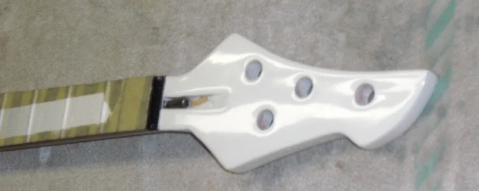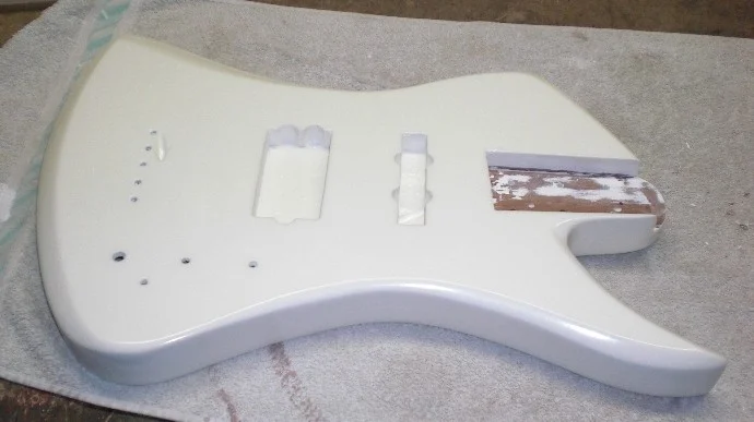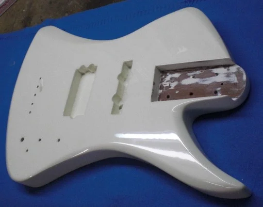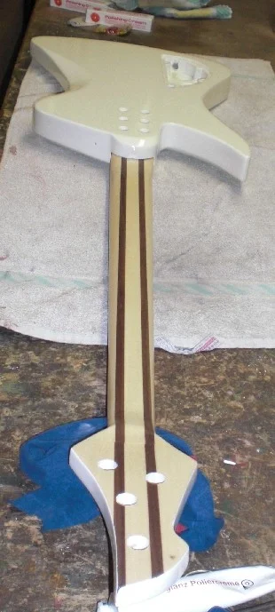 Dazu kommt noch, dass da ganz schön was an Holzpaste verwurstelt wurde, um Poren, aber auch unsinnige Löcher zu verschließen, die ich beim Bau, unnötigerweise in den Body gebohrt habe.