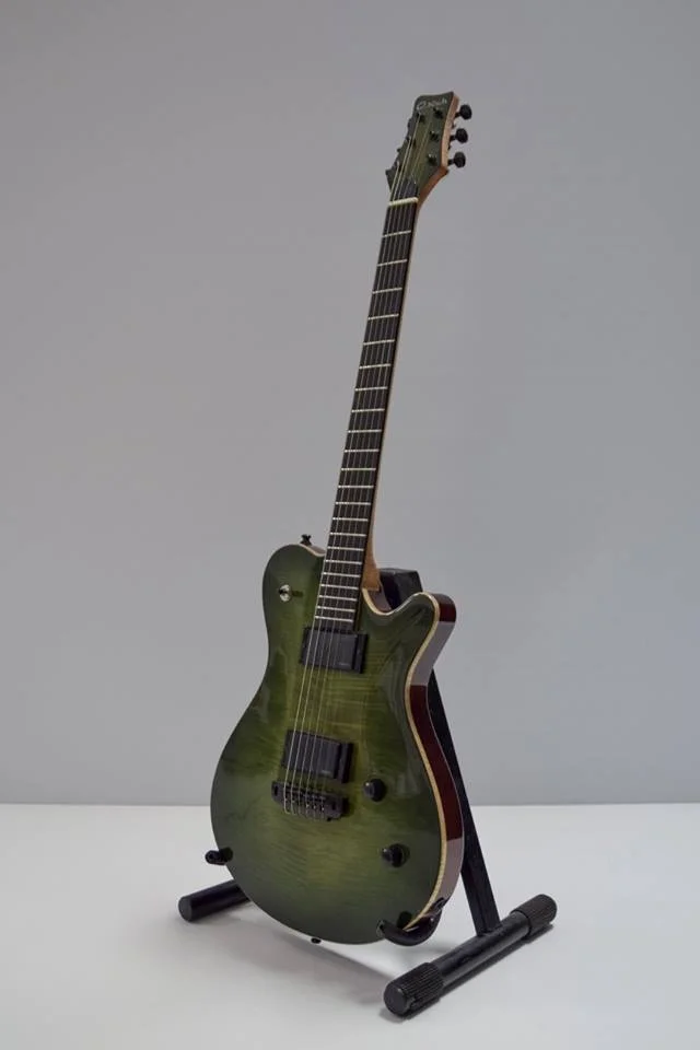 Als Finish hätte ich gerne etwas in Richtung See Through Finish oder hauchdünner Nitrolackierung in der Farbe weiß. Hardware sollte in Gold gehalten werden. Griffbrett Ahorn mit Jumbobünden.