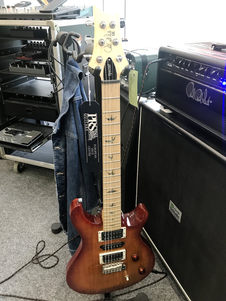 Der Grund warum ich heute dort war, war hauptsächlich die PRS SE Swamp Ash Special. Diese Gitarre hatte ich dort bereits zwei Mal angespielt aber der Bridge-Pickup ging nicht. Ich war erfreut zu hören, dass es wohl an einer kalten Lötstelle am Poti lag und es gefixt wurde. Darüberhinaus hatte ich bereits auf der Website gesehen, dass eine zweite Swamp Ash im Laden vorrätig war. Also ran ans Werk.