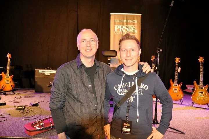 Ich bin halt nicht mit den Vorbildern aufgewachsen die ausschließlich Strats und Les Pauls gespielt haben, dazu kam ich erst viel später. Meine Vorbilder spielten und spielen Explorers, Flying Vs usw. Aber als ich mit ca. 14 Jahren die erste PRS-Anzeige im Guitar Magazine sah, war ich gleich verliebt. Konnte ich mir aber nicht leisten. Ich habe 15 Jahre lang eine PRS -Kopie von Vester gespielt, die von der Form her der PRS sehr nahe kam, wie sich später herausgestellt hat. Die Geometrie einer PRS ist wie für mich gemacht. Ich habe mich auf einer Les Paul oder Strat halt noch nie zuhause gefühlt (auf der Les Paul aber mehr als auf der Strat). Obwohl ich es probiert habe, da ich deren Sounds schon sehr cool finde.