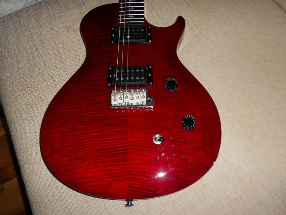 hier mal eine kurze Vorschau - übrigens ein geniales Maple-Top, hätte nie erwartet, so eine Maserung auf einer SE zu bekommen! Die Modelle, die ich vorher in diversen Läden angespielt hatte, sahen deutlich dezenter aus.