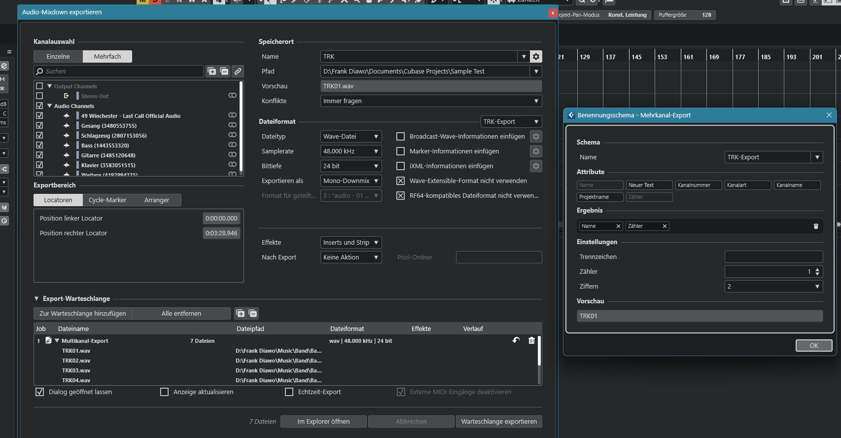 - Man kann dabei sich auch wunderbar gleich die Tracks 1-18 KORREKT als TRK01-18 von Cubase benennen lassen!!! (siehe Einstellungen im Screenshot)