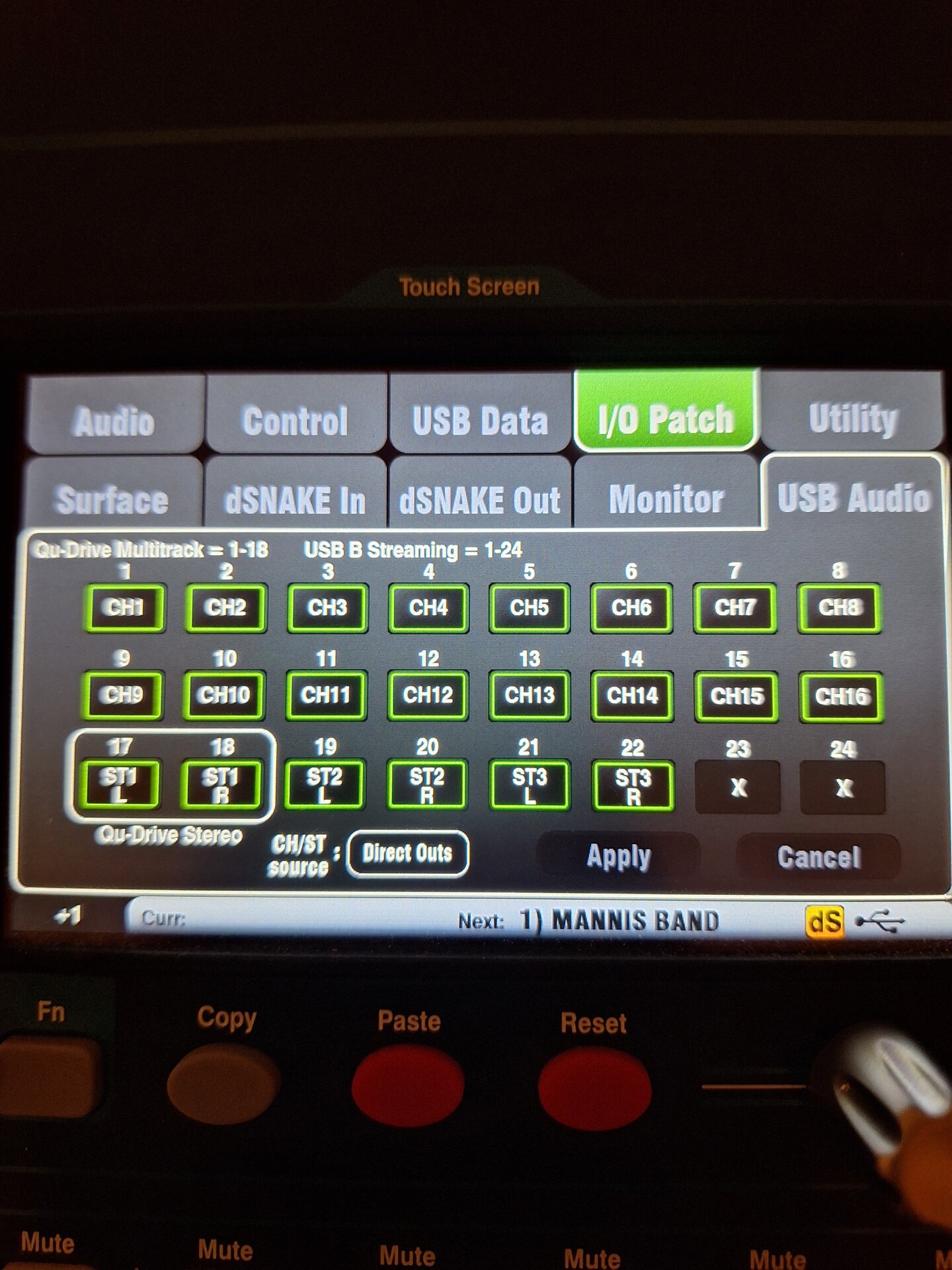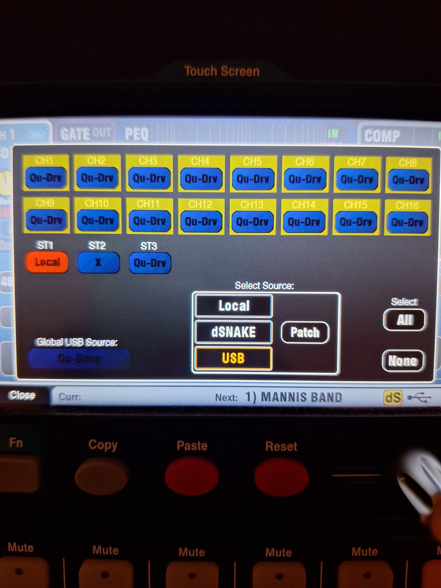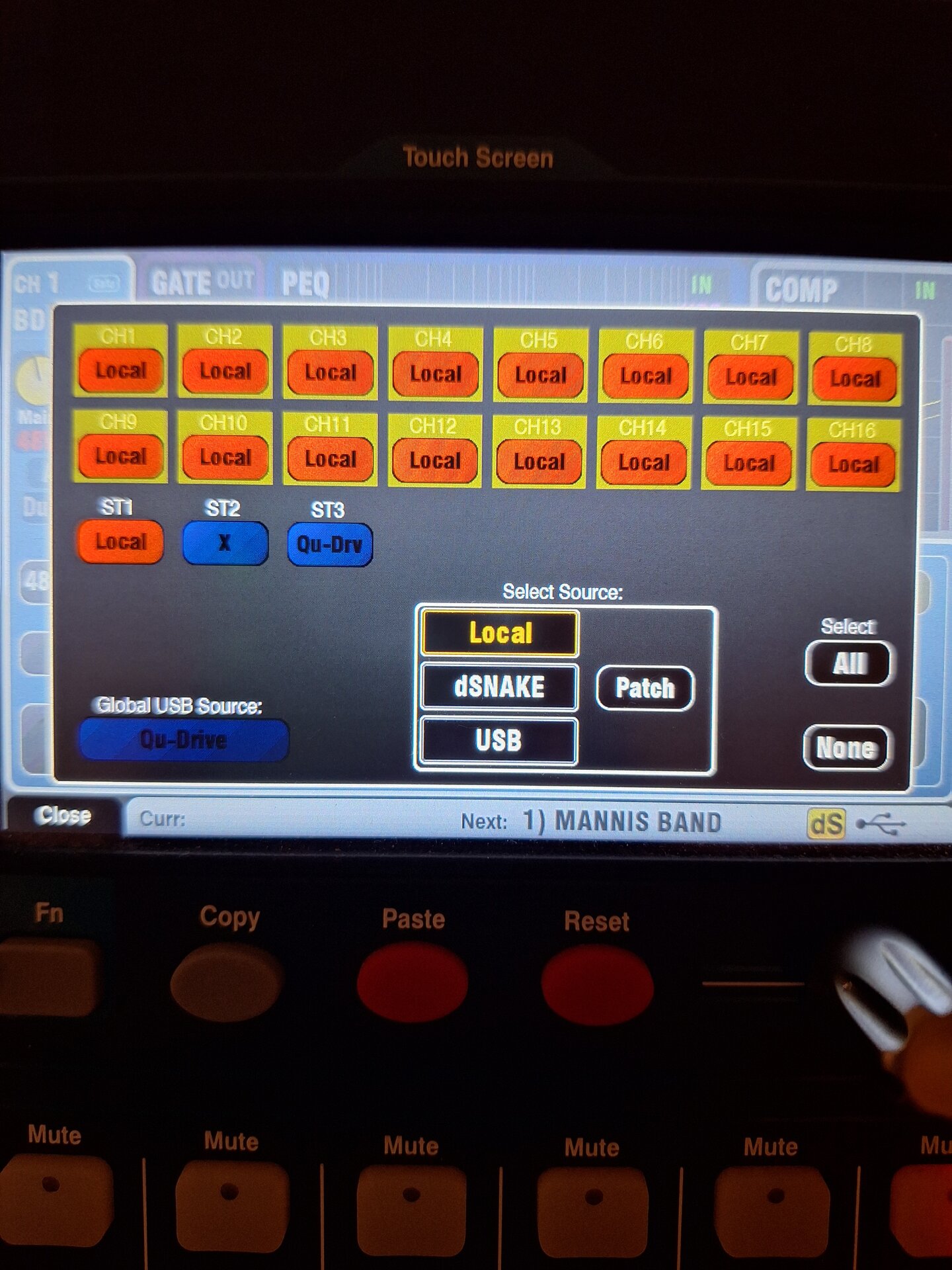 Mein QU5 hat bei den ersten beiden Proben mit der Band super überzeugt und dank eurer Hilfe hat es auch mit dem I-Pad perfekt funktioniert. Außerdem konnten sich alle 6 Musiker mittels QU4you app mit ihren Smartphones ihren eigenen Monitormix, teilweise stereo aufs Ohr zaubern.Tolles Teil.