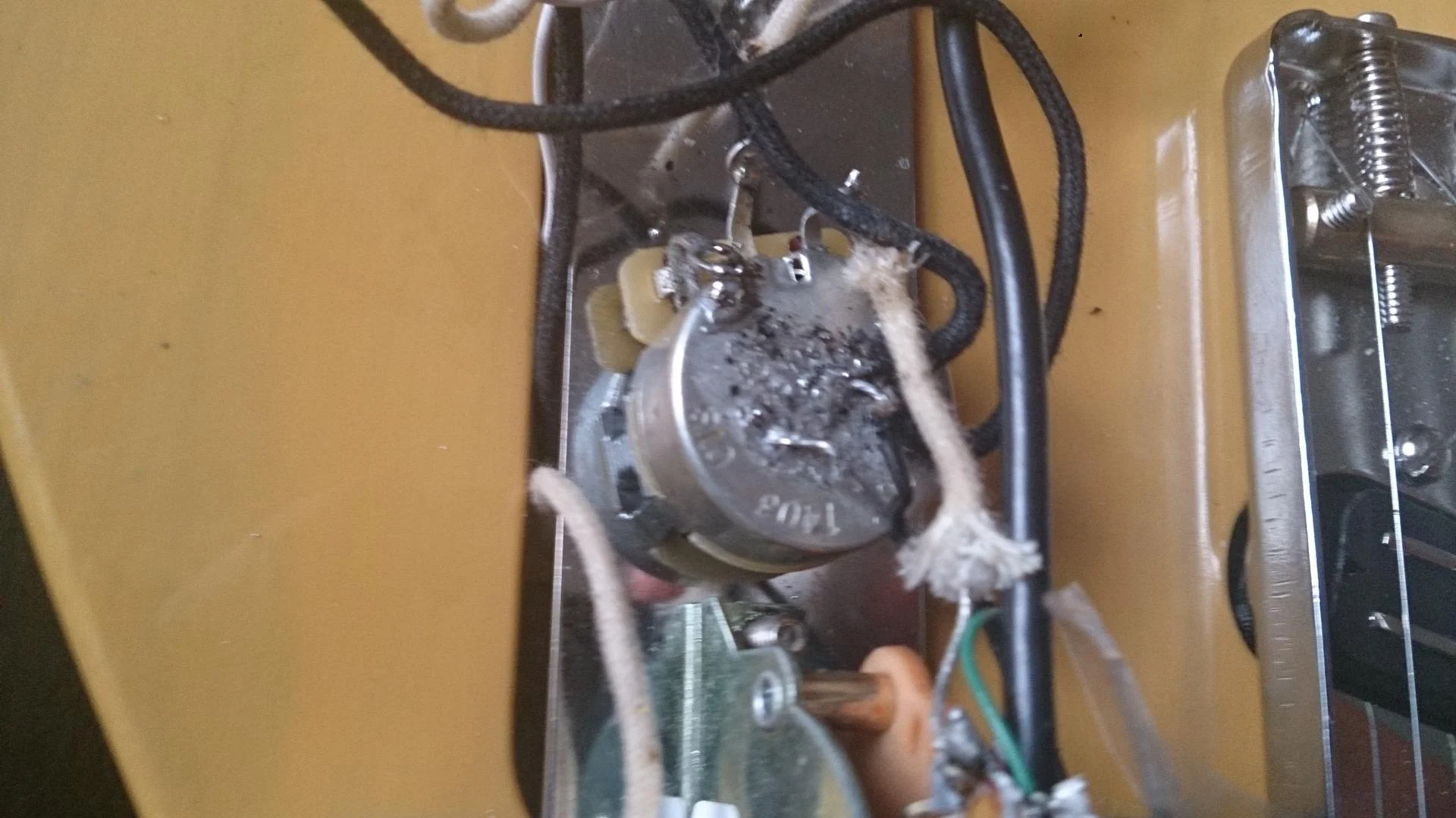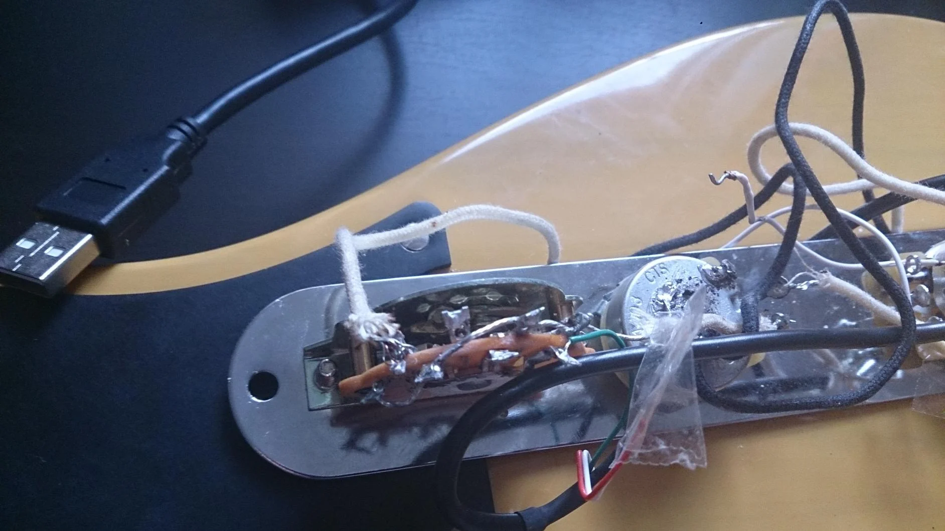 Ich bin grad bei meiner tele an einem toten Punkt angelangt. Wie man sich ja denken kann, ist die tele im typischen 50s style verlötet. Da ich ja aber lieber die standardisierte Schaltung haben möchte, hab ich halt kurzerhand alles umgelötet und auch ein Kabel für die Saitenerdung unter die Bridgeplatte geklemmt. Eigentlich keine große Sache. Nur jetzt sind ein paar Probleme aufgetreten, die ich nicht erwartet habe...
