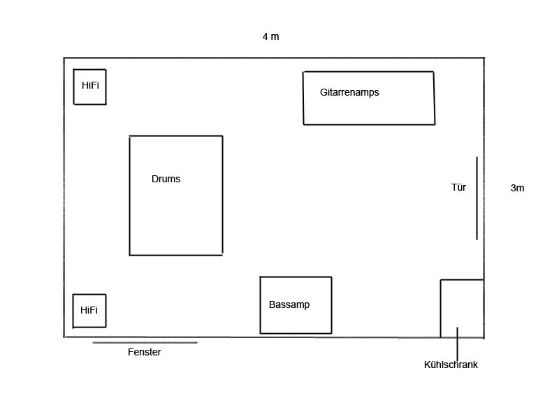 Nun habe ich vor, daraus einen Proberaum und Musikzimmer zu machen. Da allerdings die Nachbarn eine Terasse in der Nähe haben, muss er möglichst gute gedämmt werden. Weiters wäre zu erwähnen das es ein Fenster gibt.