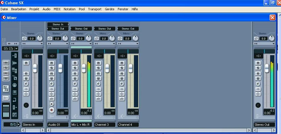 Hab zuerst Cubase geöffnet und über Geräte Reason die ersten beiden Kanäle geöffnet.