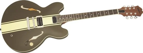 ich habe, wie einige vielleicht wissen, gerade meine Semiakustik gerettet (Truss Rod Problem). Nun habe ich mir überlegt, wo ich sie im Nachhinein gerade mal komplett gestriegelt und geschniegelt vor mir habe, eventuell eine kleine optische "Optimierung" zu machen. Meine ES Kopie ist Schwarz mit goldener Hardware und Bigsby, und nun wollte ich da nen 60´s Racingstreifen in Gold drauf machen - so Hot Rod -mäßig. So in der Art von Tom Delonges Klampfe. Nur das meine eben Schwarz bleiben und die Streifen in Gold sein sollen.