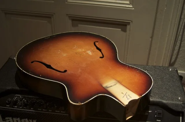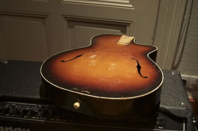 ich habe da aus der Bucht eine recht schöne, aber total kaputte Gitarre gefischt:
