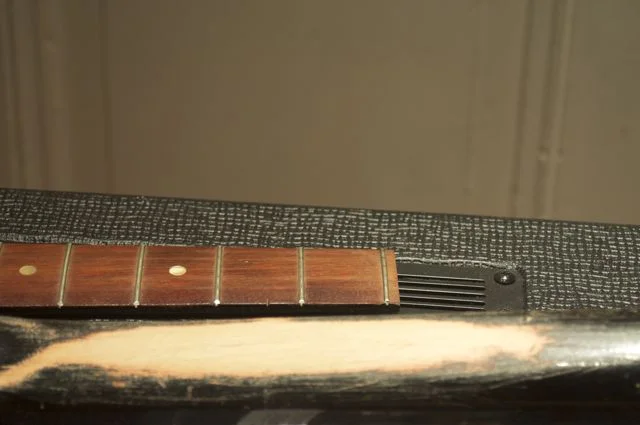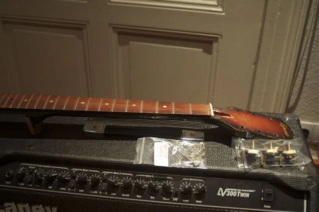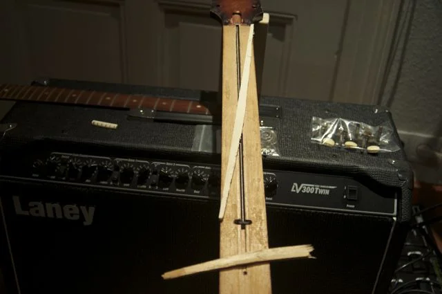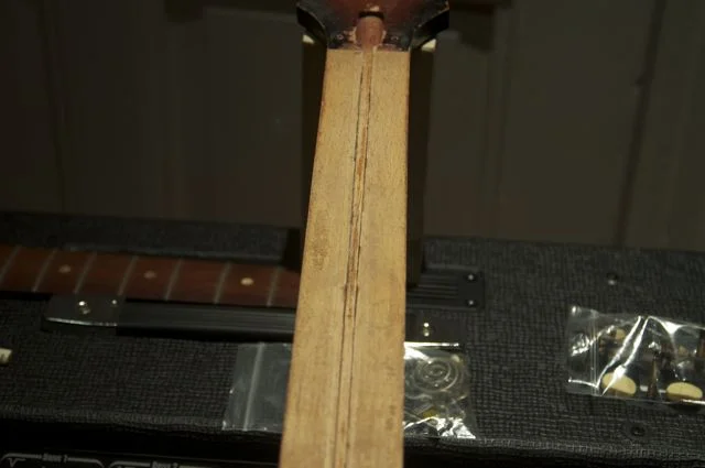 Der Halsstab war gebrochen und die Mechaniken habe ich bereits abgeschraubt (liegt alles in den Plastetüten auf dem 4. Foto).