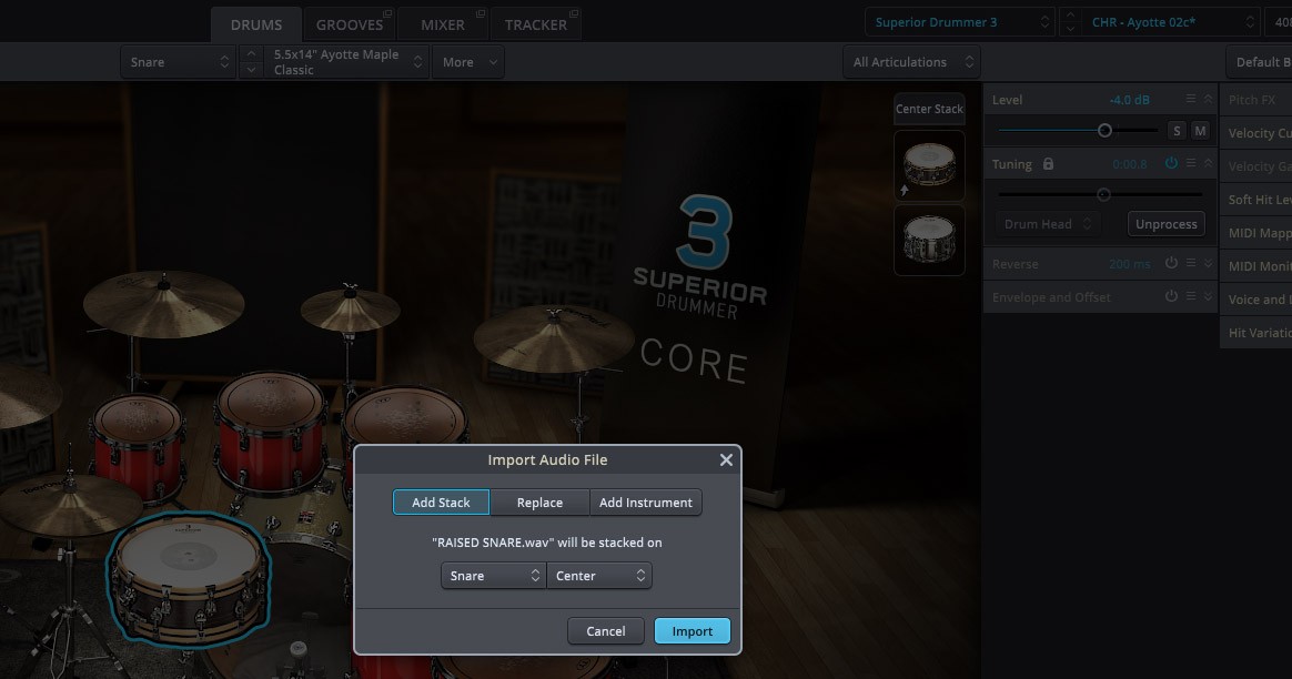 Ich kann die Samples auch in Slate Trigger, oder direkt als Audio Sample in Superior Drummer 3 laden, um sie dort gleich zu meinem Kit Sound dazuzumischen.