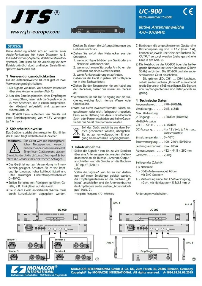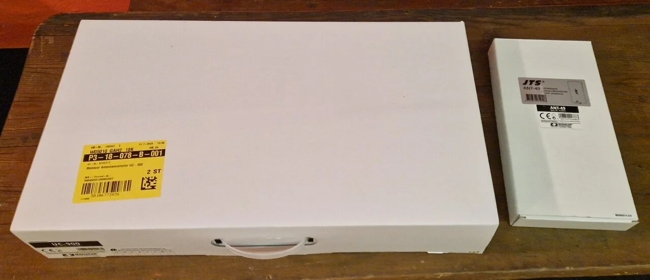 Der Combiner wird von der Firma "JTS" vertrieben und hat die Bezeichnung "UC-900". Das ist ein passiver Combiner.