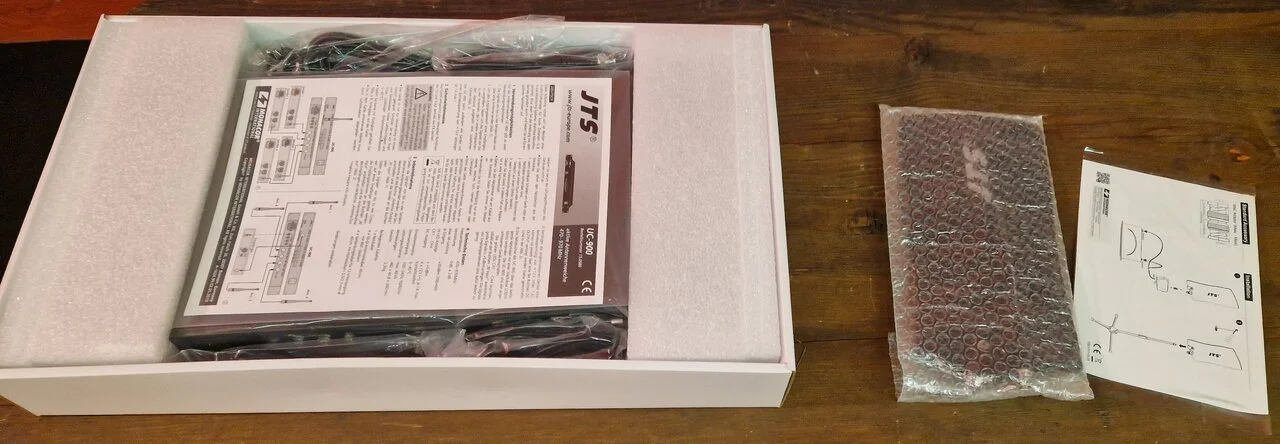 Beim UC-900 und der ANT-49 ist eine zweisprachige Anleitung dabei (Deutsch und Englisch). Auch hier wieder eine Plastiktüte drum herum. Die Anleitung scheint recht spärlich, aber es steht alles drin was man wissen muss. Beim UC-900 sind alle Kabel dabei, die man zum Anschluss benötigt. Das ist etwas das ich bei Sennheiser schon ein paar mal vermisst habe. Bei der Antenne ist das klassische Mikrofonstativ Gewinde verbaut mit entsprechendem Reduziergewinde.