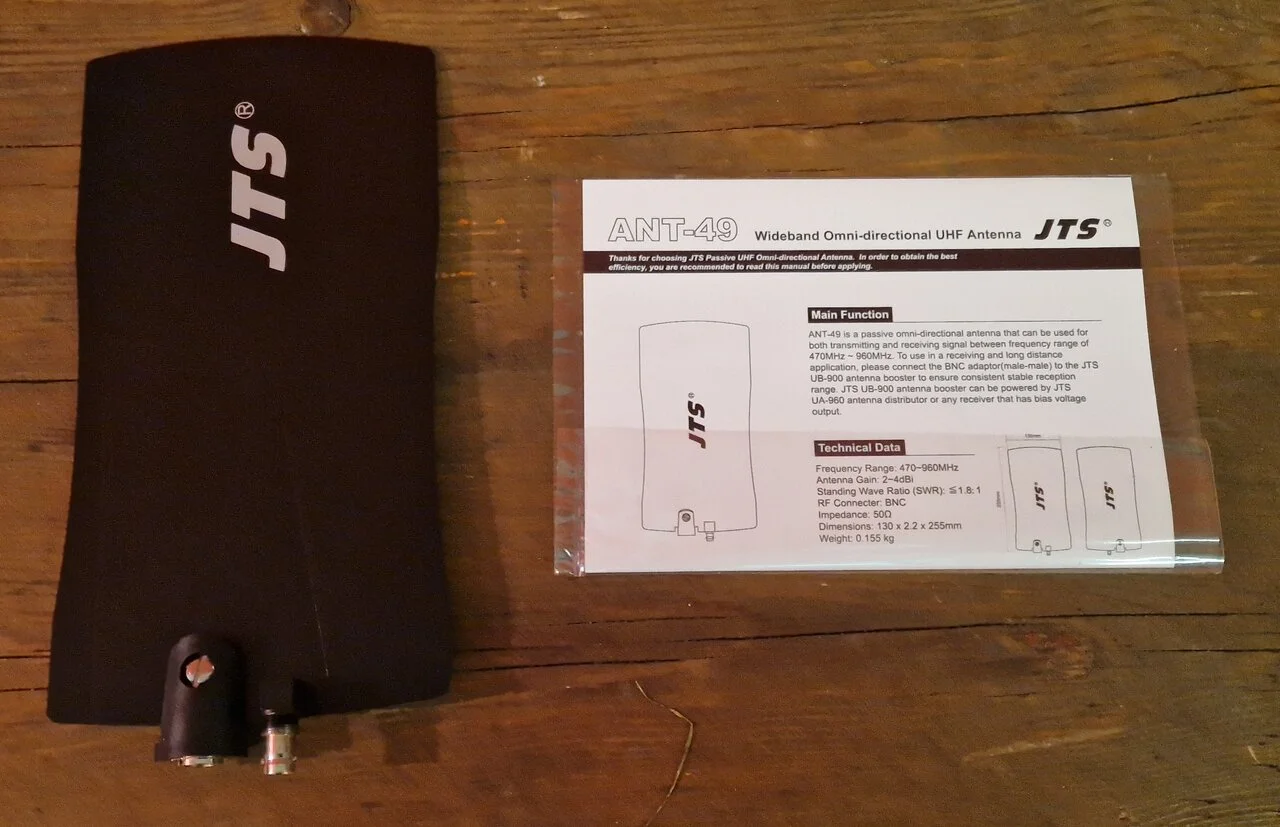 Als externe Antenne hab ich mich für die "JTS - ANT-49" entschieden. Das ist eine Rundstrahlantenne. Für uns als Band die sich auch mal ins Publikum bewegt die bessere Lösung wie eine gerichtete Antenne.