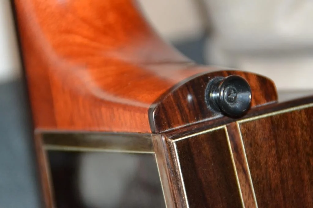 Der Schiftzug der LAG ist aus Ahorn und in die Palisanderkopfplatte eingelassen...