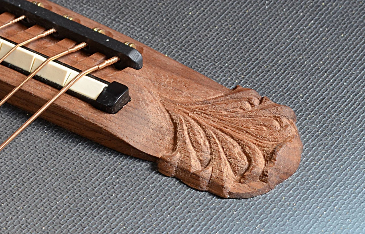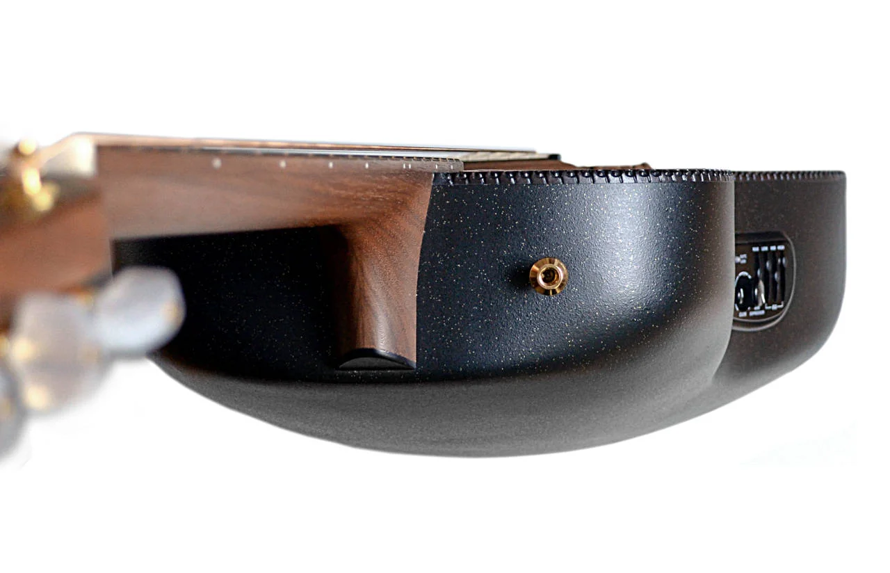 Ein Alleinstellungsmerkmal der Adamas-Reihe ist das für die Decke verwendete Birken- und Kohlefaserlaminat. Was auf dem Papier im Hinblick auf den traditionellen Musikinstrumentenbau erst einmal abschreckend aussieht, hat meiner Meinung nach einen Volltreffer gelandet. Das Resultat ist eine sehr dünne und schwingfreudige Decke, die man nicht wie ein rohes Ei behandeln muss.