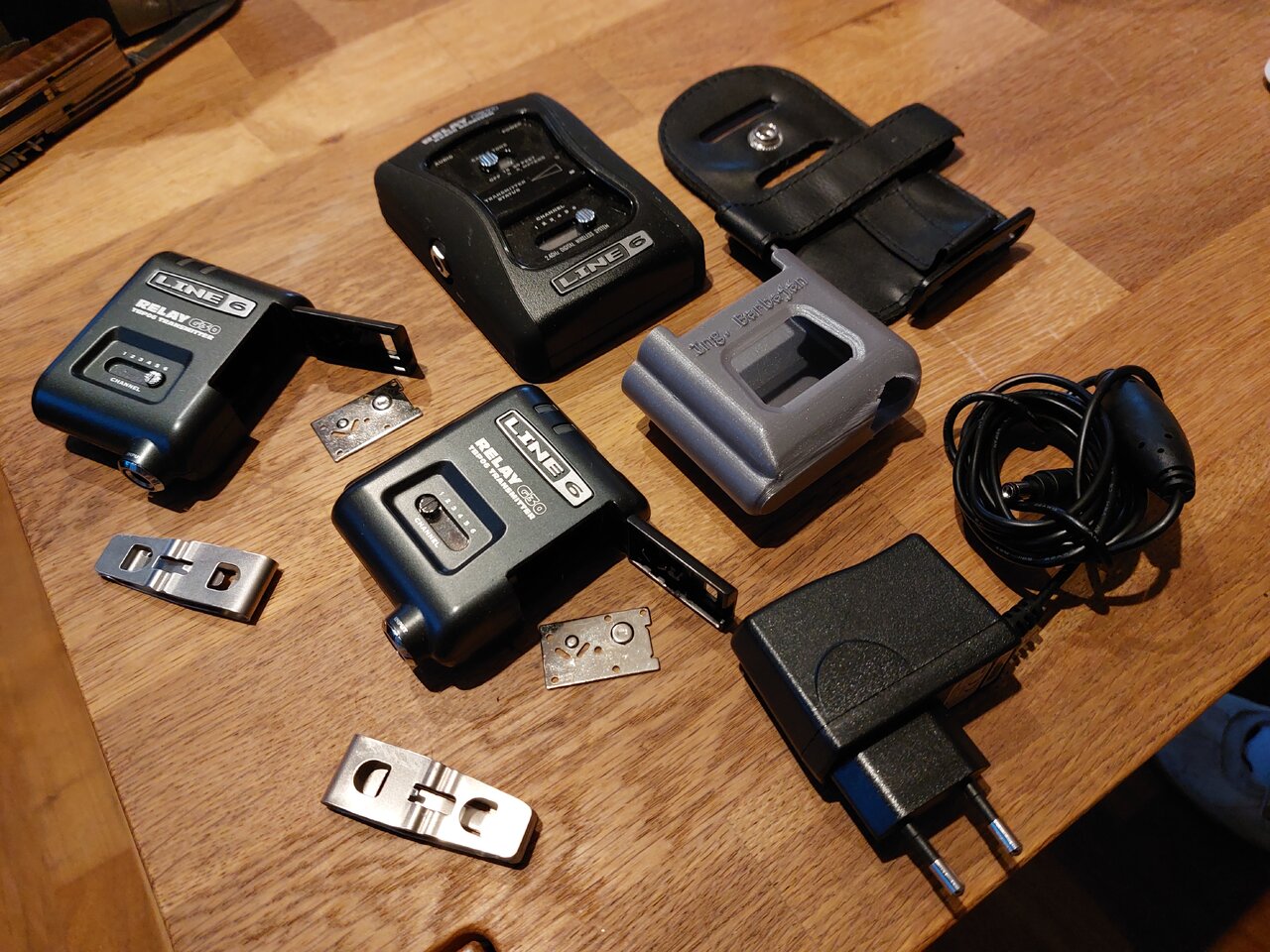 Ich spielte meine Lowden seitdem bei einigen Veranstaltungen und freute mich jedes Mal wieder über die neu erlangte Freiheit durch den Funk ohne Kompromisse beim Klang haben zu müssen! Trotzdem sollte noch eine weitere Modifikation kommen.Ich hatte mir zwischenzeitlich ein weiteres G30-Funksystem gebraucht bei ebay-Kleinanzeigen erstanden. Es bestand aus zwei Sendern und einem Empfänger. Bei beiden Sendern war der Clip und der Riegel des Batteriefaches ausgebrochen. Da wusste ich ja schon entsprechende Abhilfe (klick).
