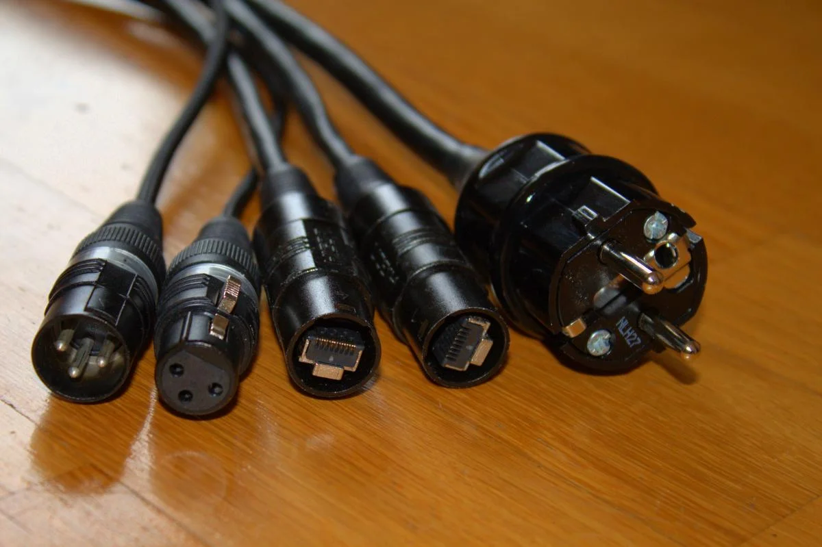 Über die Ethernetleitung kann man digitale Tonpulte und Stageboxen verbinden oder man schickt als Lichtler eben Artnet drüber. Die NF-Leitung ist vermutlich am ehesten fürs Licht interessant oder wenn die Tonfraktion mal eine Stereosumme schicken möchte. Über die Schukoleitung kann der FOH dann auch direkt mit Strom versorgt werden.