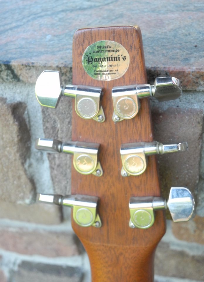 Mein Bruder selber rührte sie aber kaum an, seine Absicht, Gitarre zu lernen, blieb ein Plan. In ihren 23 Jahren Existenz wurde sie - zumindest von ihm - also kaum gespielt. Ein paar Falten (also Spuren) hat sie trotzdem.
