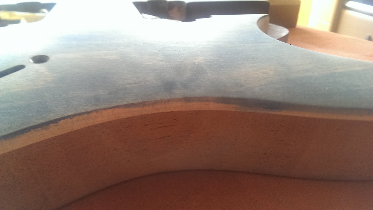 Ich überlege gerade den Body nochmal mit 1200er oder auch 800er ein bisshen abzuschleifen und gerade in der Mitte ein bisschen mehr um ein möchtegern "Sunburst" zu erzeugen. Ob das funktioniert?