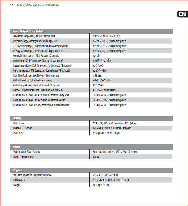 Midas gibt für die M32 Console einen "Standard - Temperaraturbereich" bis 40 Grad Celsius an!