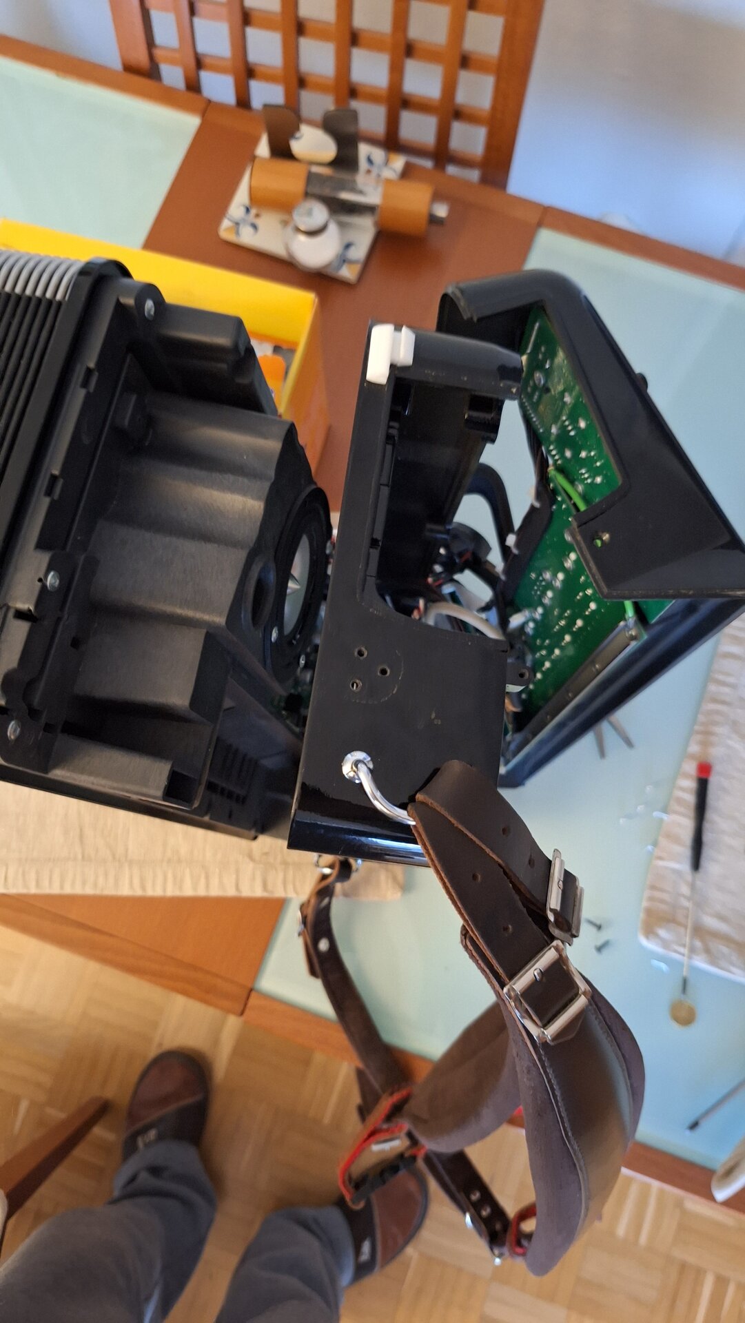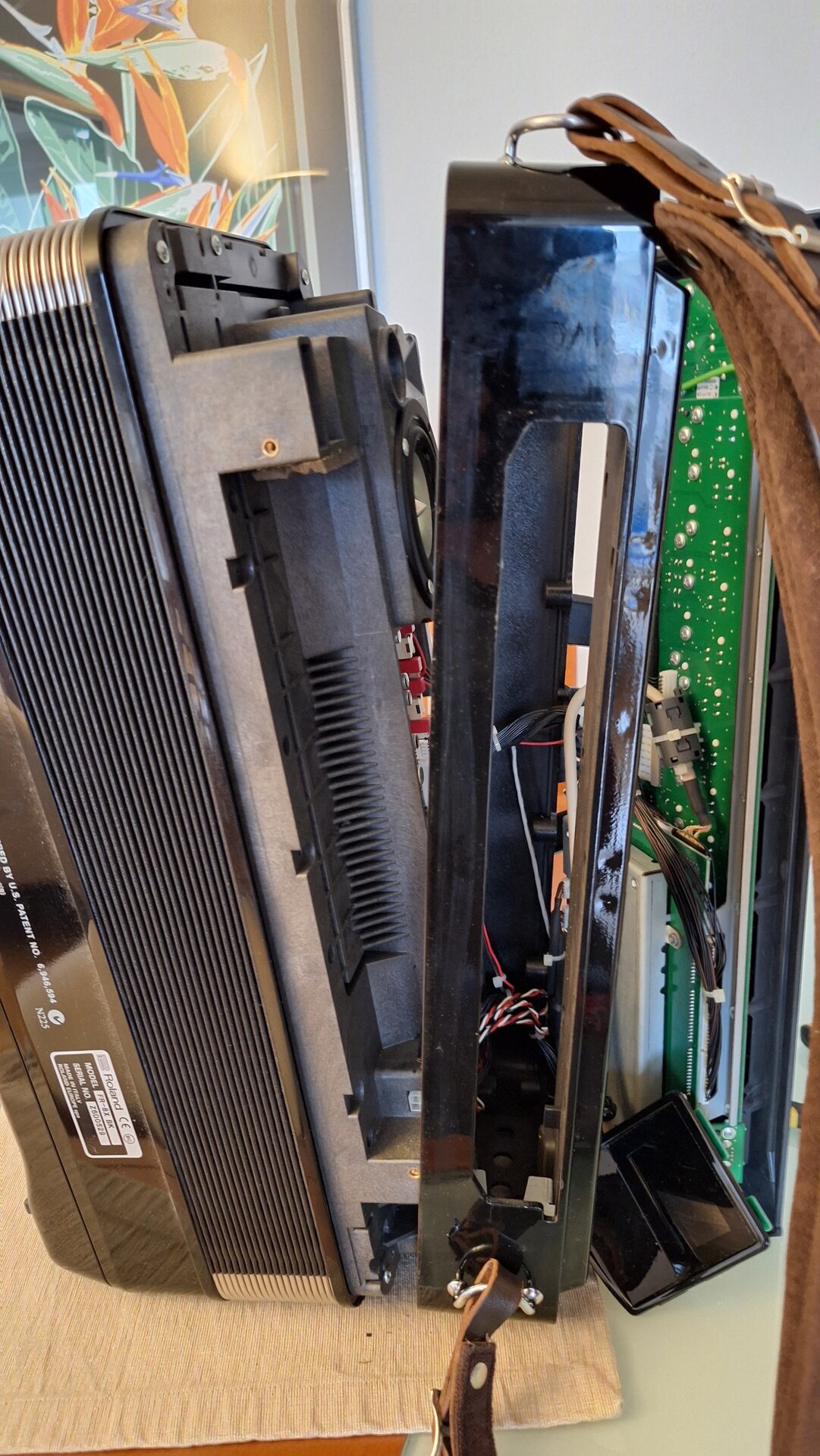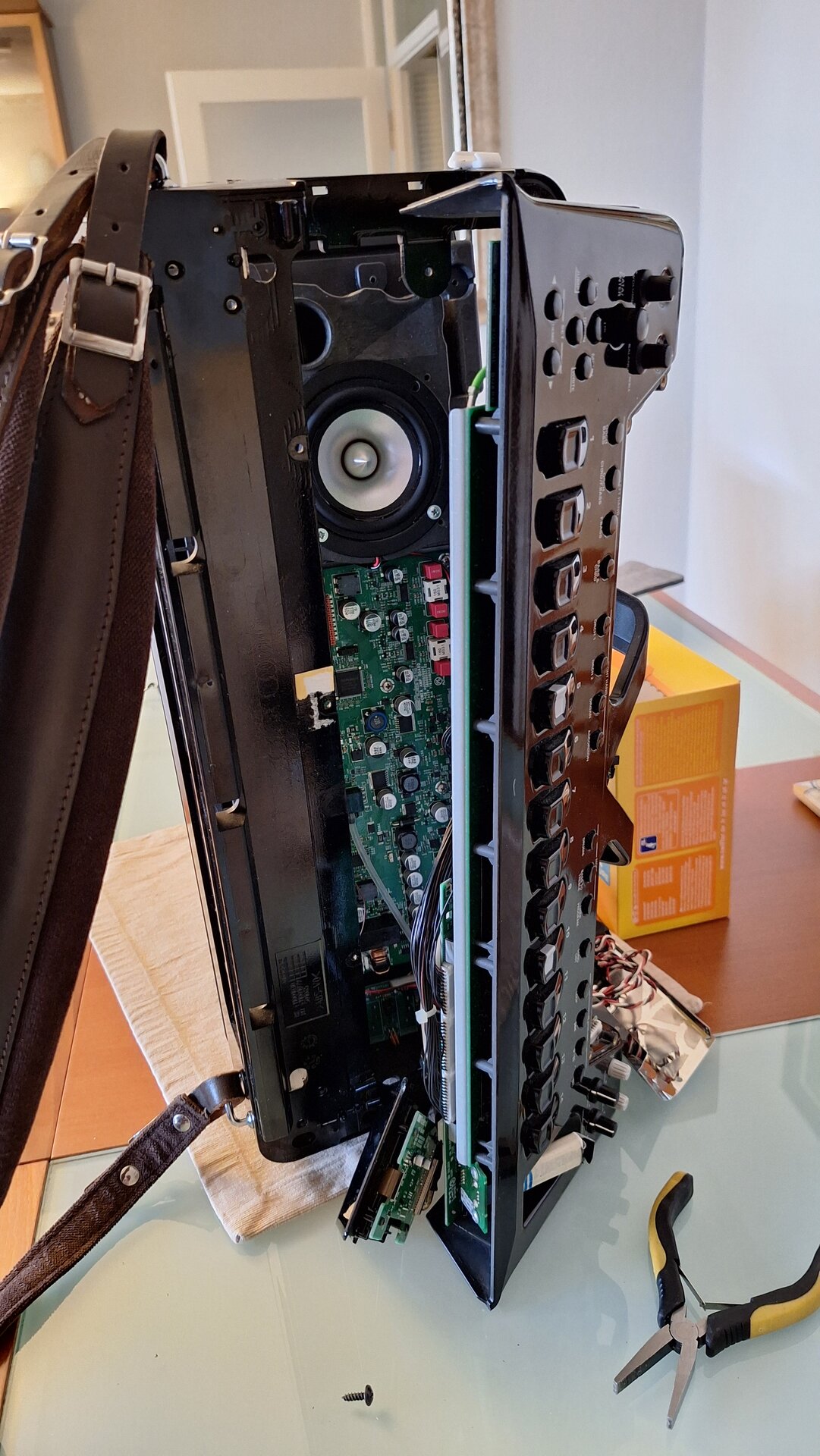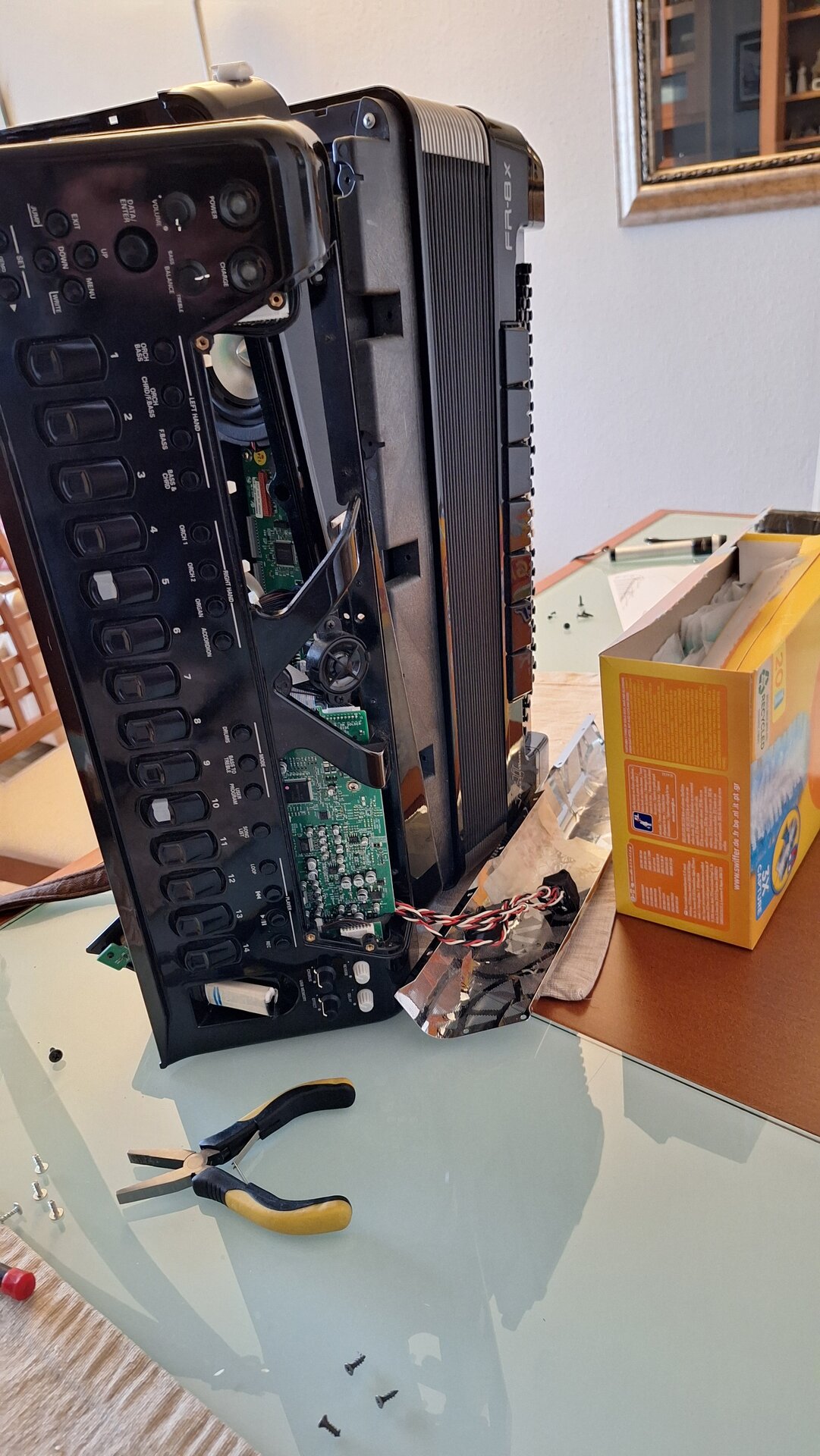Irgendwo innen drin. Das 15 kg Teil mal so locker schütteln um evtl. was zu hören, geht auch nicht. Was hilft ist Zuversicht ;-)Wo ist die denn hin? Rausgefallen? Reingefallen? Selbstauflösung?
