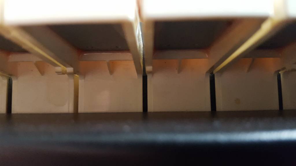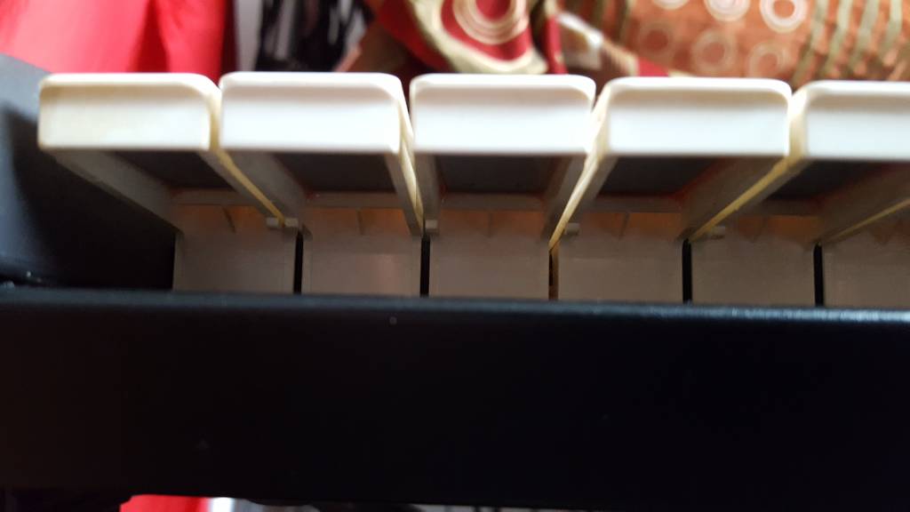 Nun ja; ein "Red Glue Problem" haste dann wirklich erst wenn das Epoxy sich verflüssigt hat, runtertropft und die ganzen Innereien versaut! Dass es rund um die Gewichte und an den Tasten etwas Kleber hat muss aber nicht zwangsläufig bedeuten, dass die Tastatur komplett hinüber ist......kann auch etwas schluderig gearbeitet worden sein damals.....oder man hat einfach etwas zuviel Kleber genommen um sicher zu sein dass die Plättchen nicht runterfallen!