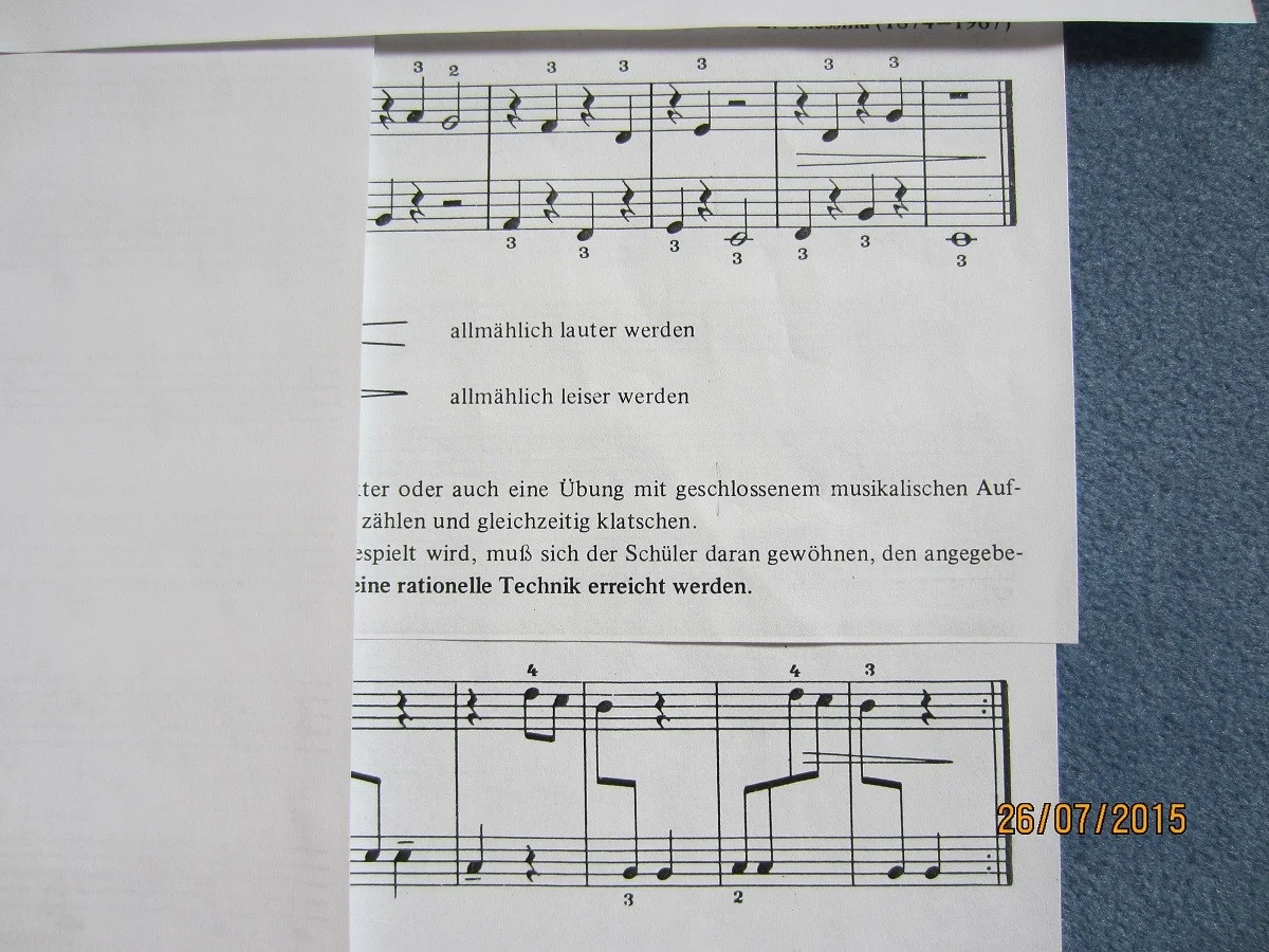 Ich habe meine erste Klavierstunde gehabt und mein Lehrer unterrichtet nach der russischen Klavierschule. Da jetzt ja Ferien sind, hat er mir ein bisschen Lernmaterial mitgegeben.