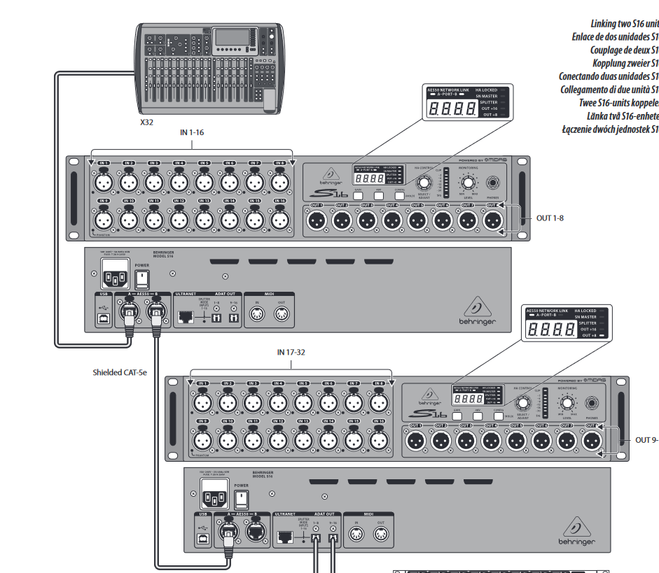 1.) Wir haben ein Rack in dem ein x32 Rack ( soll nur zum Monitoring genutzt werden) und eine S32 Stagebox ( hier gehen alle Instrumenten Inputs rein als auch Gesangsmicros) verbaut sind. Ebenso sind in dem Rack ein wlan Router und auch alle IEM Geräte verbaut.