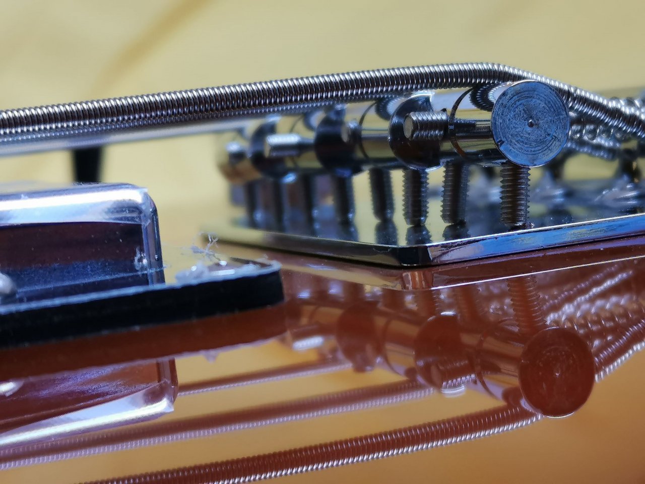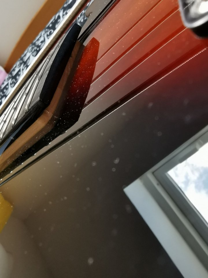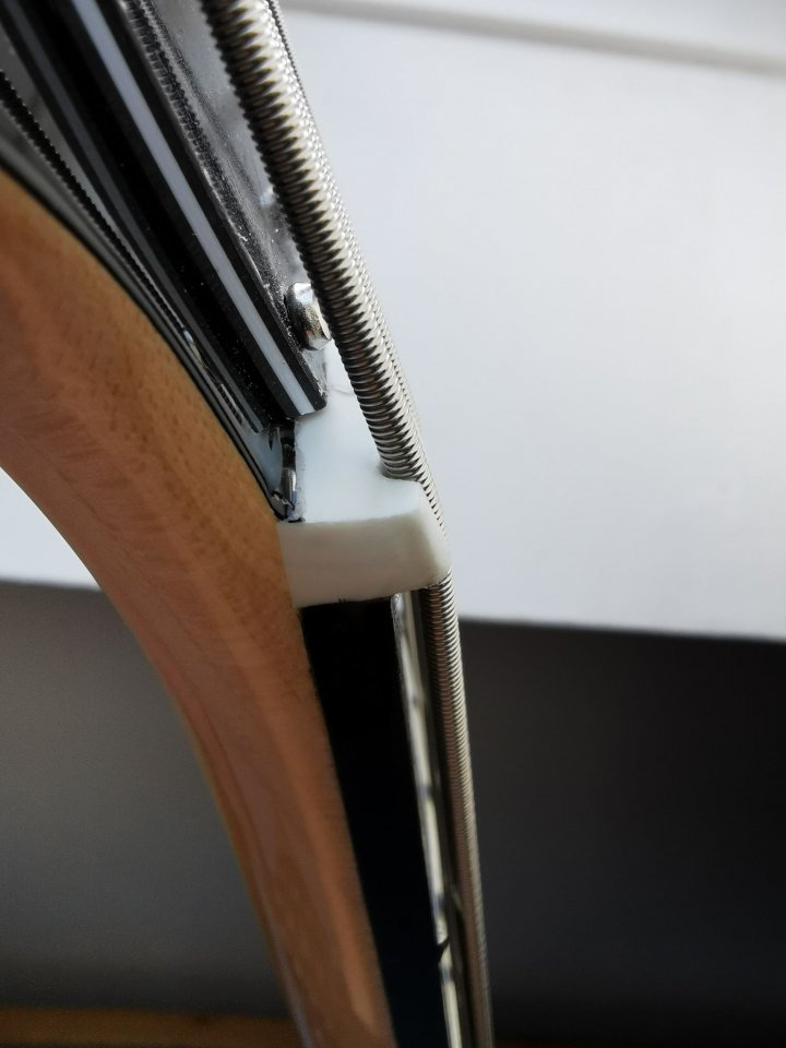 Das hat hinsichtlich des schepperns fast gar keine, wenn auch nur eine minimale Besserung erwirkt. Jetzt klingen die Töne in den höheren Lagen sogar etwas "dünner". Aber egal, was mir nun nach dem justieren noch zusätzlich aufgefallen ist, ist, dass es an den Saitenreitern jetzt auch scheppert