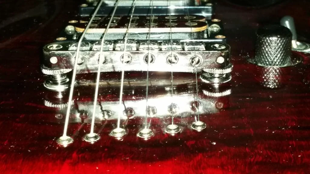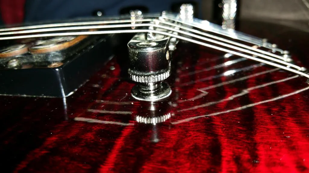 Das gute Stück hat eine TOM-Bridge in Form der anhängenden Fotos. Frage: wie stelle ich bei diesem Typ die Saitenlage ein? Einfach so unter Saitenzug ließen sich die Rändelmuttern nicht per Hand drehen. Wollte das aus Angst etwas zu beschädigen aber auch nicht mit Kraft oder gar mit Werkzeug probieren. Vielleicht ist ja noch eine Sicherung bzw. Kontermutter zu lösen. Ich vermute zwar dass die sichtbaren Schrauben die von oben durch die Brücke Richtung Body gehen, diese am Body festschrauben.... Frage trotzdem vorher besser nach.