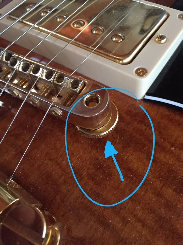 Die Saitenlage meiner drei hohen Saiten ist mir ein wenig zu hoch. Kann ich durch herunterdrehen der Rändelmutter an der Brücke dies leicht korrigieren ohne andere Dinge zu verstellen ? Ich habe zur Verdeutlichung ein Foto beigefügt.