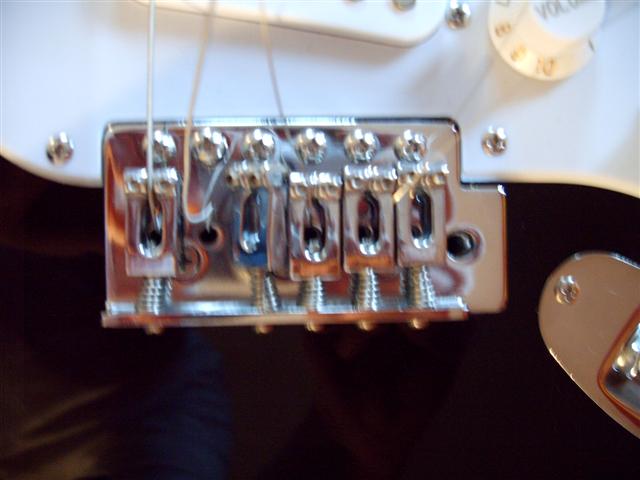 Ich nehme immer eine andere Saite zur Hand (eine bereits abmontierte) und schieb damit die festgeklemmte Saite von oben raus.