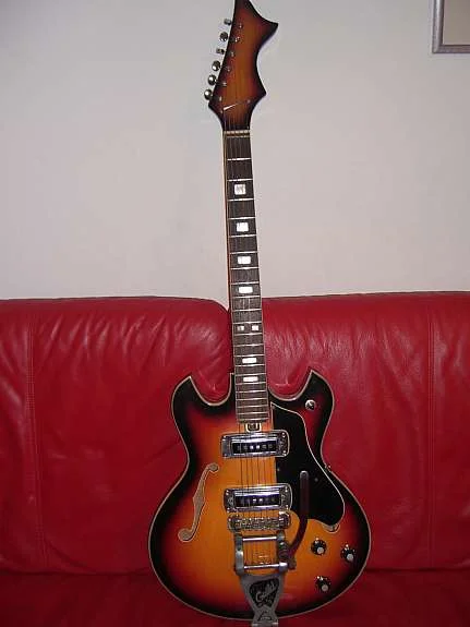 Das sieht für mich mehr nach einer Teisco, oder was von Teisco hergestelltem mit Guild Vibrato aus.![]()