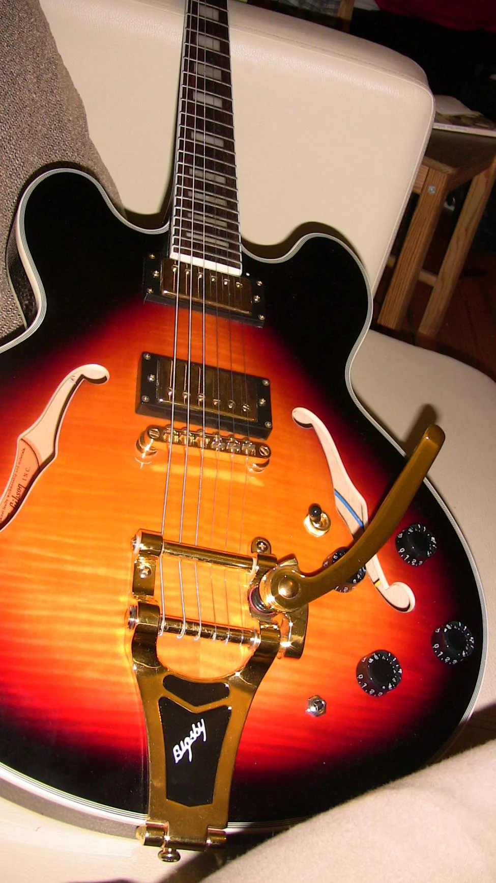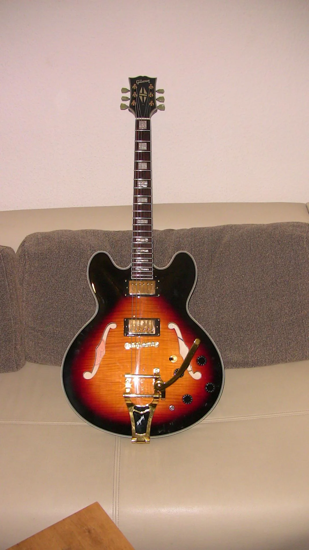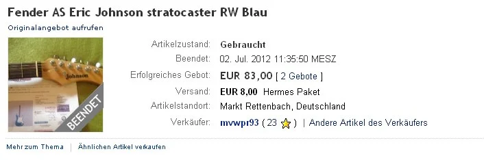 Er meint schon die auf dem Foto, nur ist das eben keine echte. Erwähnt in der ganzen Auktion kein einziges Mal das Wort Gibson, im Zusammenhang mit der Gitarre und faselt was von möglichem Nachbau. Da müssten doch sämtlich Alarmglocken schrillen.