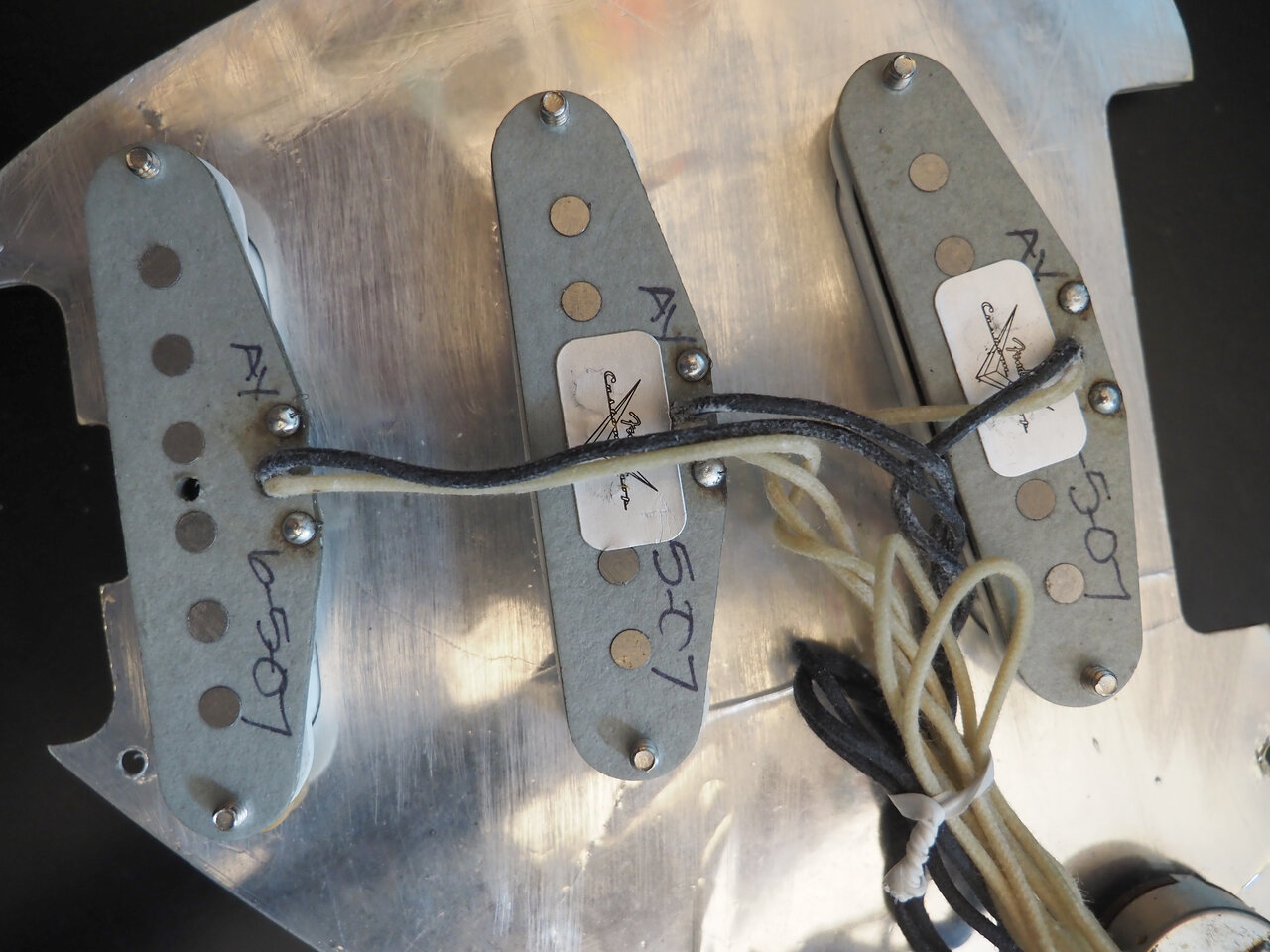 Die grauen Fiber-Bobbins und das rote Tape sind mir bei Gibson nicht geläufig, eher schon die aus schwarzem Plastik. Durch die fehlende Grundplatte und die nachträglich geänderten Anschlussdrähte kann ich da leider sonst nicht viel dazu sagen, da fehlen unterscheidungskräftige Merkmale. Die dunklen Magnete dürften keramisch sein, sowas findet man mMn eher in Fernost-Kopien.