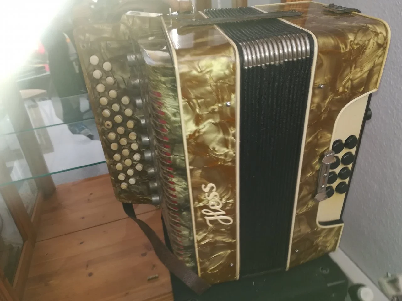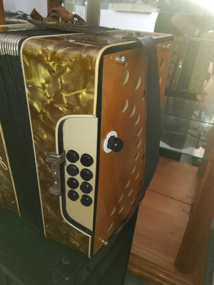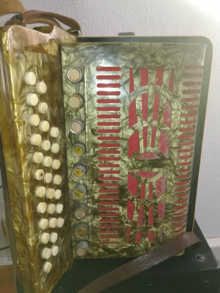 Nun Bleibt noch das Rätsel mit dem Register-Schieber auf der Bassseite. In der Oberen Stellung klingen die Akkorde wie auf der Zeichnung. In der untern Stellung bleiben die Bässe gleich, die Akkorde klingen eine Oktave höher und leerer, keine Terz? Weniger "Schwebung" - wenn man leichte Dissonanzen so bezeichnen kann.