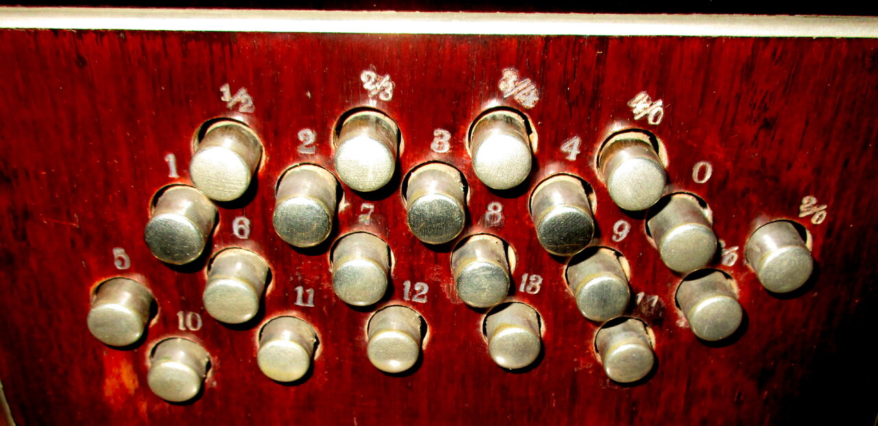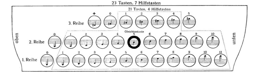 Die Tontabelle 21 / 4 Knöpfe, entspricht meine Hohner Club III M die 23 / 7 Knöpfe hat.