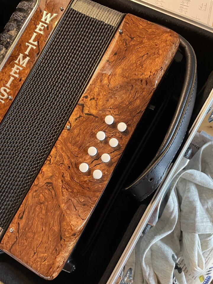 Das Teil ist ein Erbstück vom Vater der bis vor kurzem noch aktiv mit dem Teil musizierte.