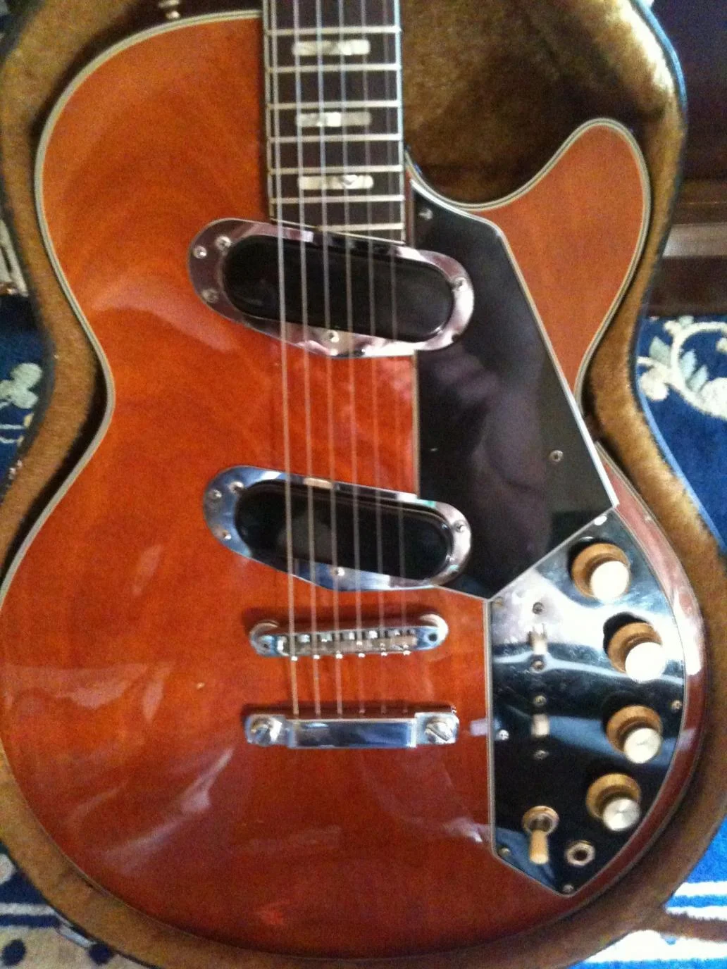 Das bisschen Elektronik was noch in der Gitarre vorhanden war erinnert an das wiring einer musima elgita und der Saitenhalter mit dem Tremolo erinnert irgendwie an eine migma elektra..... Und auch der Klinken-Eingang erinnert etwas an eine Elgita.....
