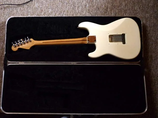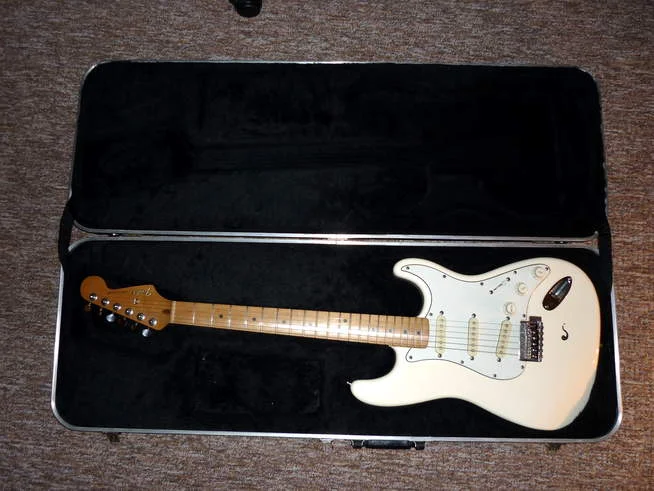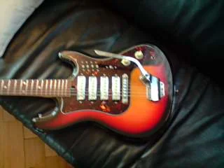 ich haber eine Gitarre mit der form einer Fender , 4 vermutliche single coils ( evtl. auch humbucker ) sunburstlook