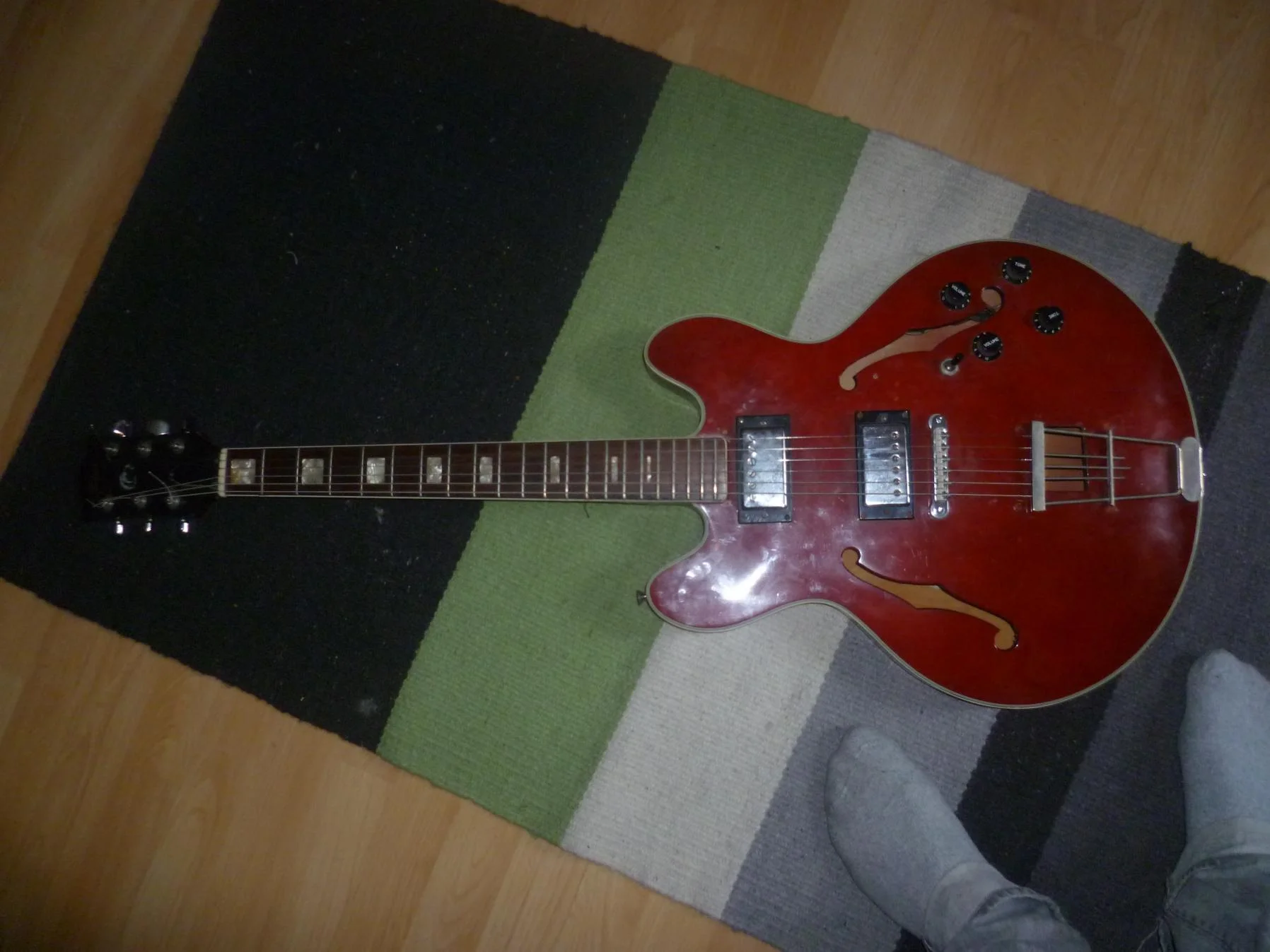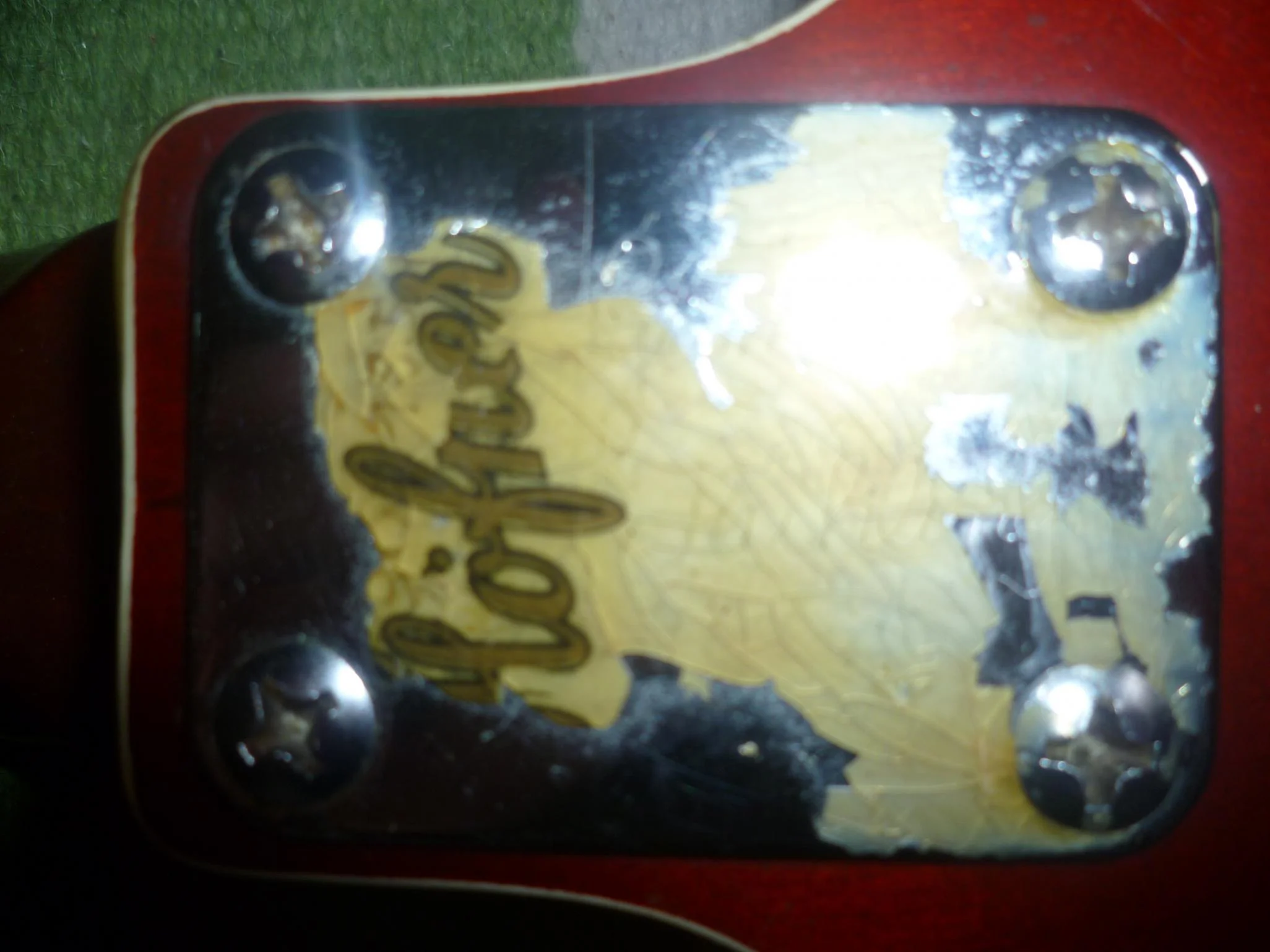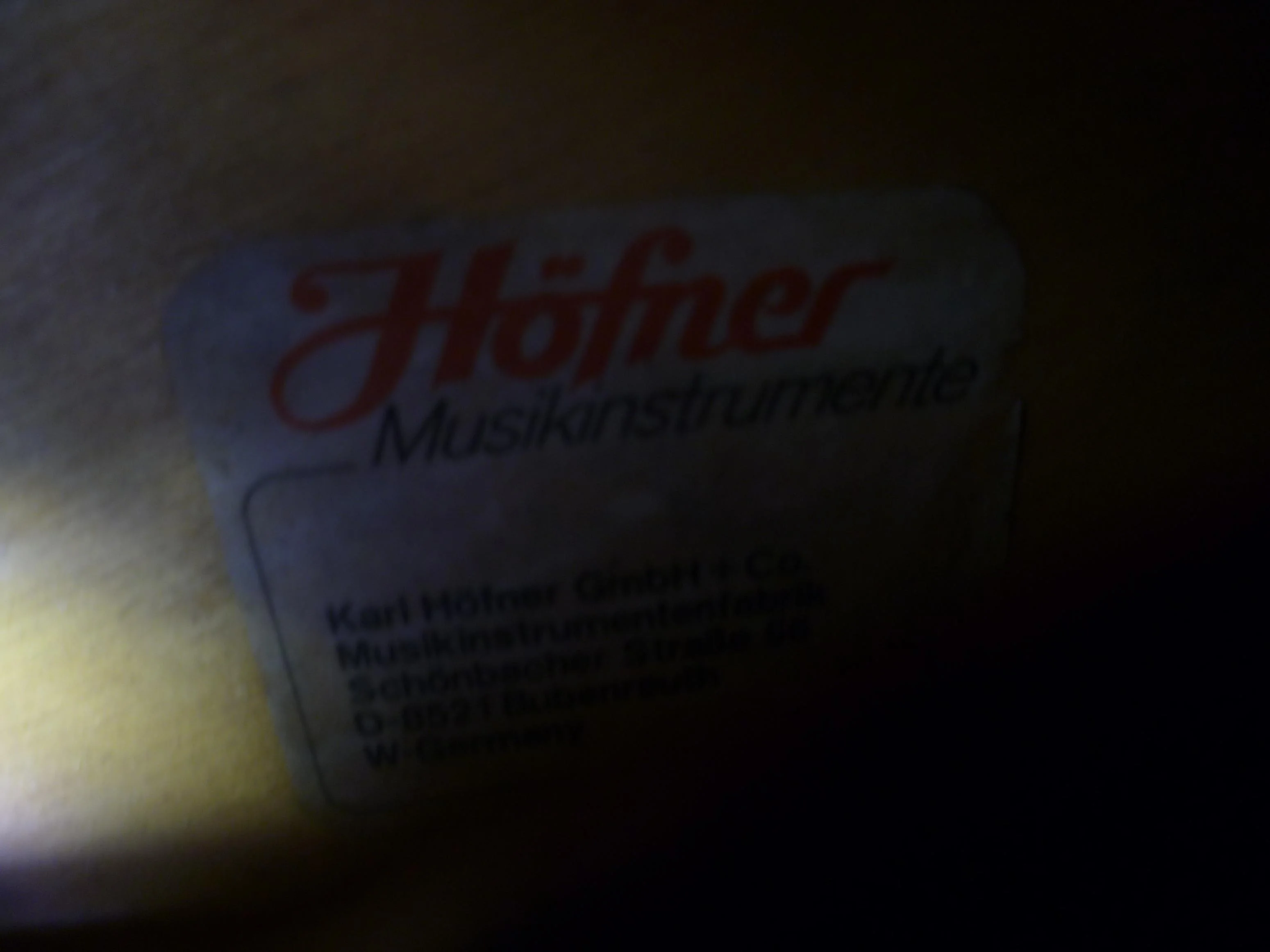 Vllt stand ja vor der letzten 'Verbesserung' irgendwann mal 'Gibson' auf dem Headstock, der verantwortliche 'Custom-Shop' war ja offenbar recht einfallsreich. Der Einkleber (Anhang) hat zumindest nichts mit einem üblichen Höfner-Einkleber zu tun, die sehen typischerweise so aus......wiso sollte also jeman eine höfner kopieren wollen und die kopfplatte in den gibson-look feilen?