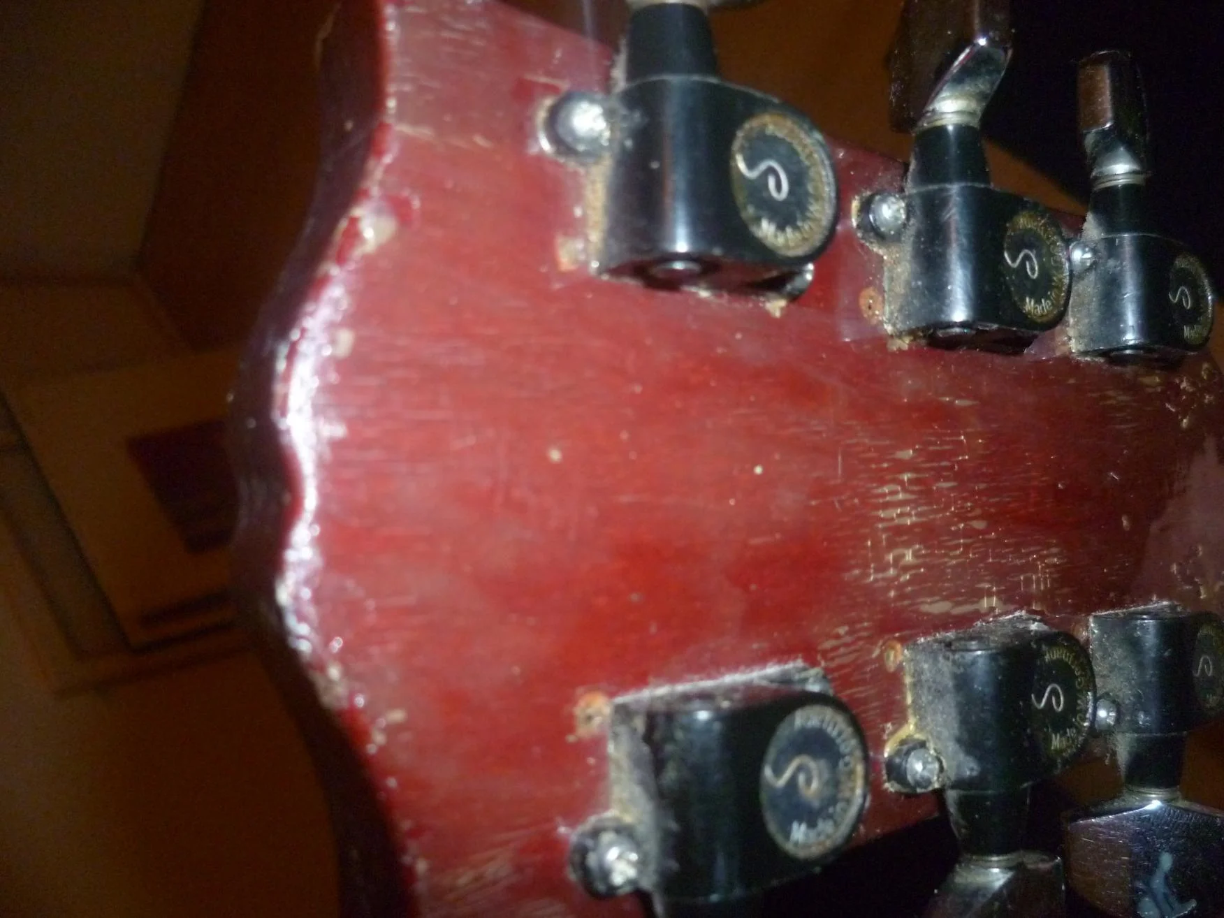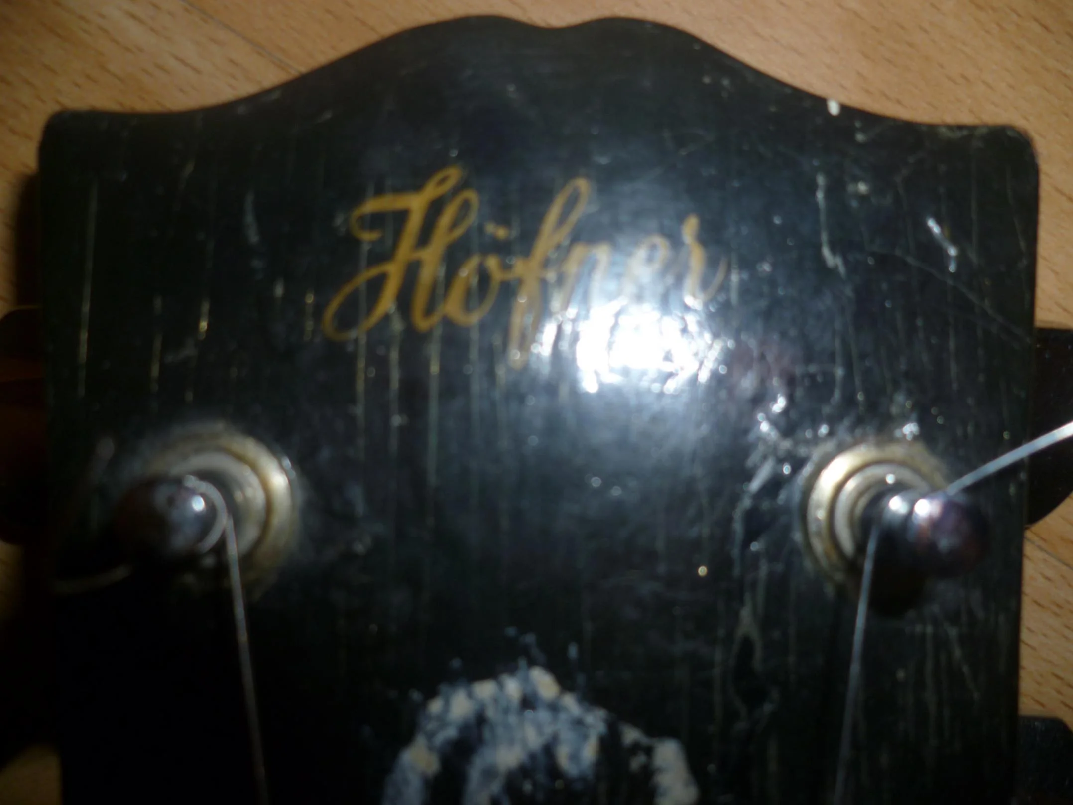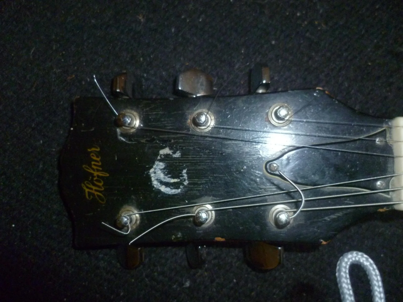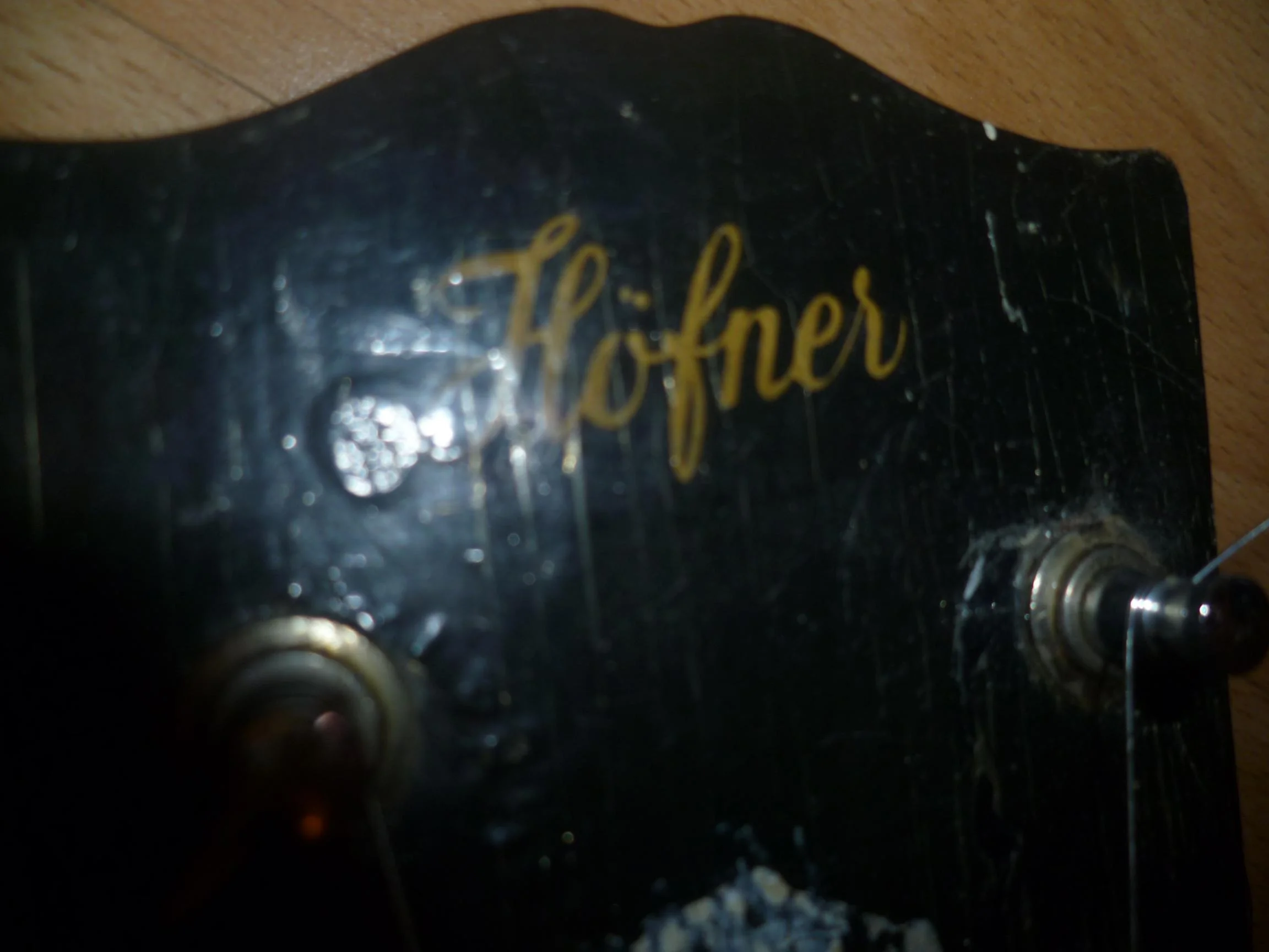 Naja, bei der augenscheinlichen Nachlackierung der Kopfplatte wäre es sicher kein Akt gewesen, vorher die kleine Kerbe oben einzufeilen......hat die Kopfplatte einen open book-Oberrand? Das wäre eigentlich nicht Höfner-typisch, oder?