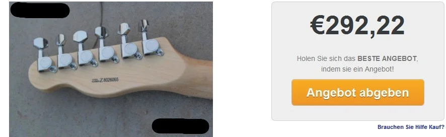 Nackter Trussrodzugang, billige Saitenniederhalter, eckiges Griffbrettende, grobe Holzmaserung... sieht mir eher nach Originalbezeichnung: China Fake und Neupreis: <300 aus.![]()