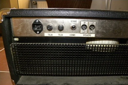 Die Transistorendstufe hat als Besonderheit einen Ausgangsübertrager, sodass die volle Leistung von ca. 500W sowohl an 4 Ohm als auch an 8 Ohm (umschaltbar auf der Rückseite) anliegt. Zum damaligen Zeitpunkt waren Speakon-Lautsprecher Buchsen noch unbekannt, deswegen sind die Lautsprecherausgänge wie damals bei höheren Leistungen üblich als XLR male Buchsen ausgelegt. Beschaltet sind übrigens Pin 2 (heiß) und Pin 1 (kalt). Ursprünglich sollte auf der Chassisrückseite eine Folienbeschriftung vorhanden gewesen sein, die sowohl Modelbezeichnung als auch Serien-Nr. zeigt. Aber das ist wohl verloren gegangen."