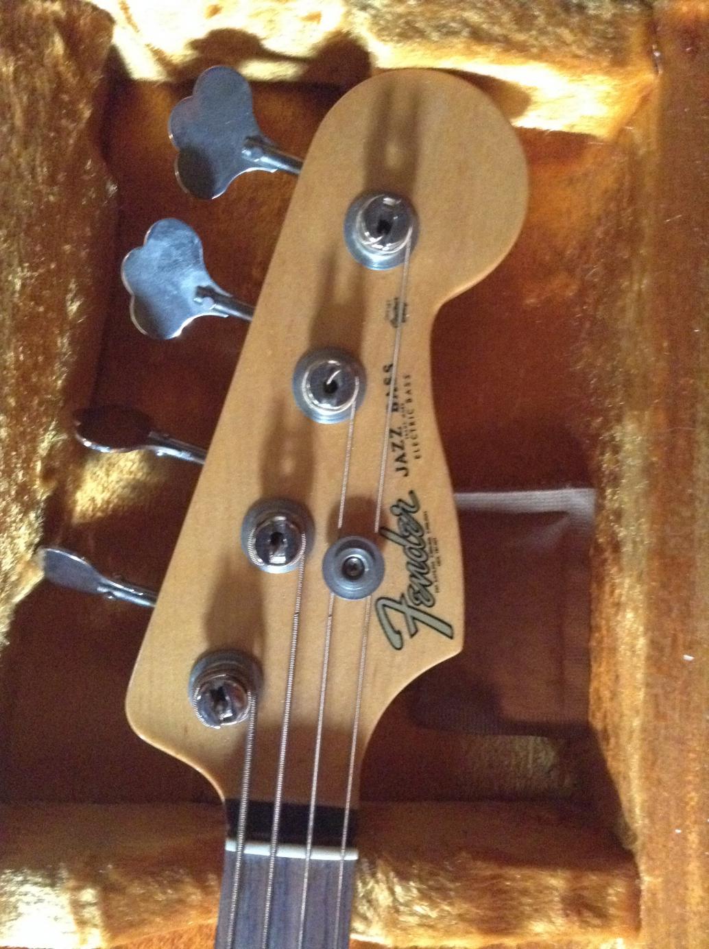 habe hier einen Fender USA Jazz Bass der aus ungefähr 75 sein müsste. Der Zustand des Basses ist hervorragend für sein Alter, es gibt kaum Lackschäden und der Hals ist auch einwandfrei. Nur an der Hinterseite des Kopfes ist der Klarlack abgeplatzt. Ansonsten ist technisch auch alles soweit in Ordnung. Leider fehlt das Case.