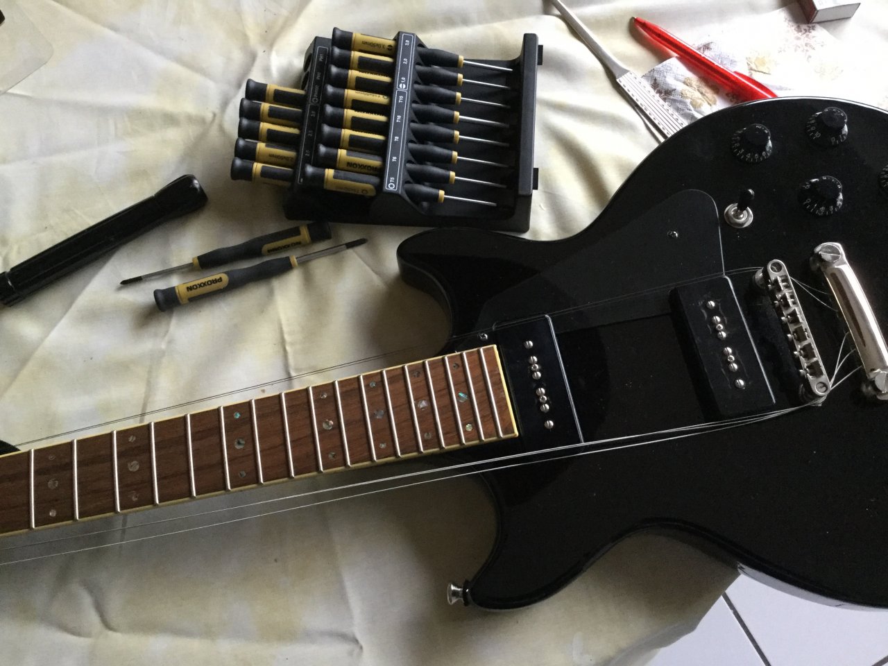 Was ist das denn für eine Gitarre?Anhang anzeigen 599755 habe mich heute ganz profanen Aufgaben an der neuen Colorama gewidmet