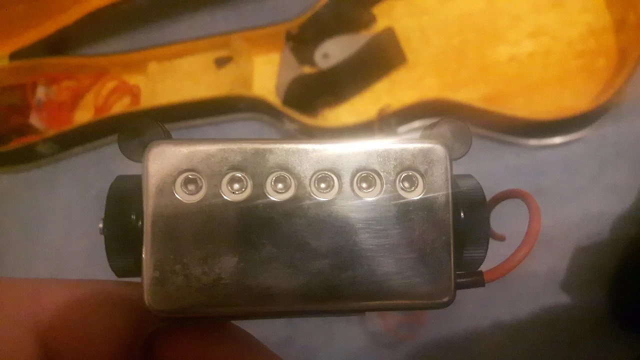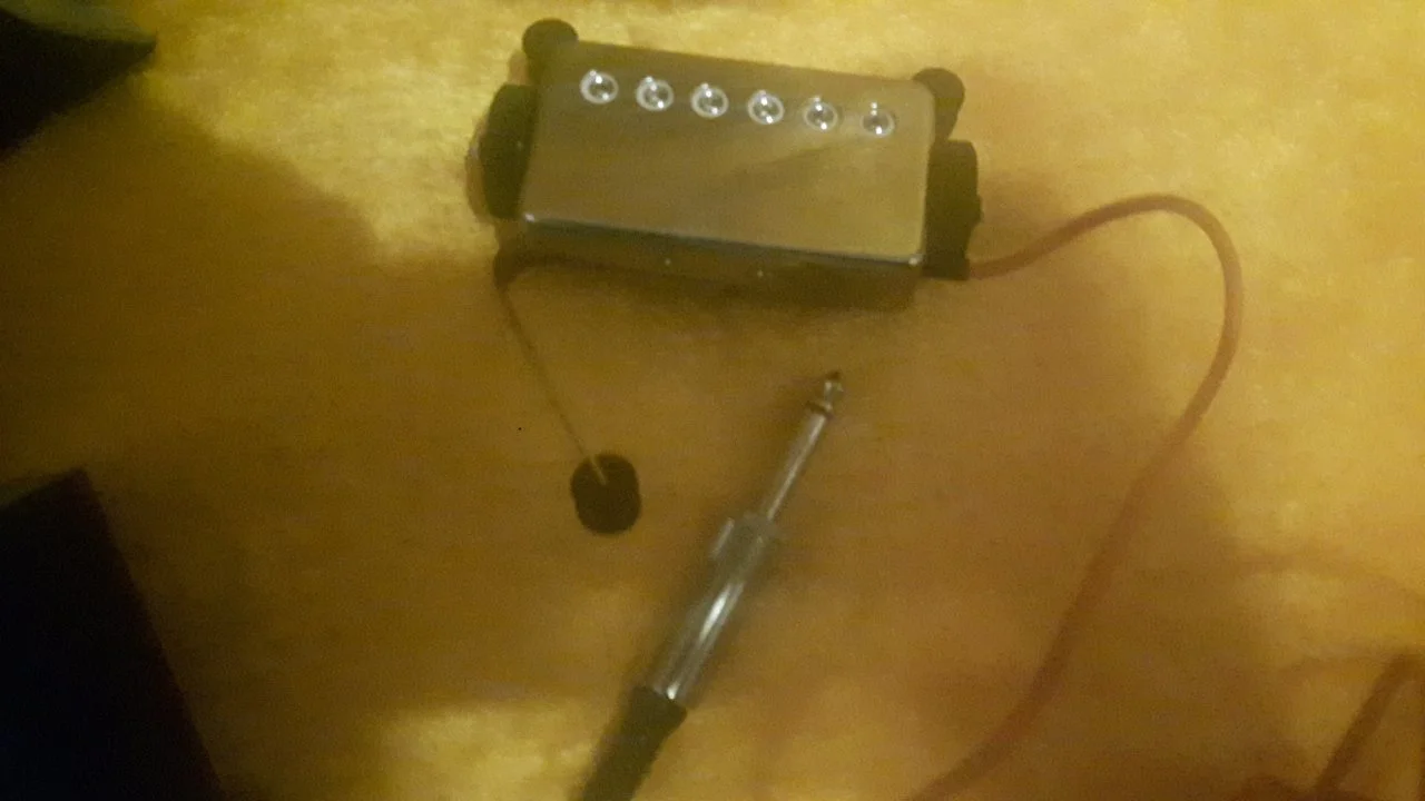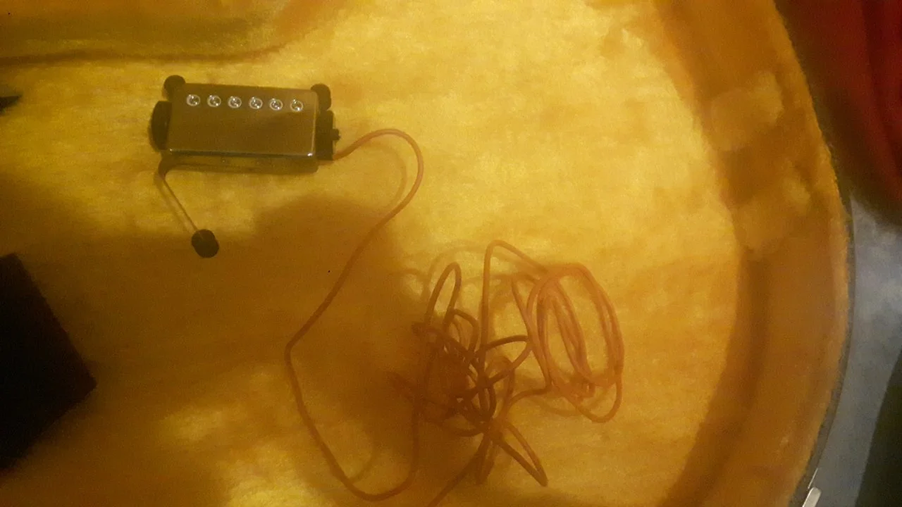 1.: Ist es das, wonach es aussieht? (Seperater Humbucker mit Klinkenkabel für die Gitarrenbuchse sowie 2 drehbaren Rädchen)