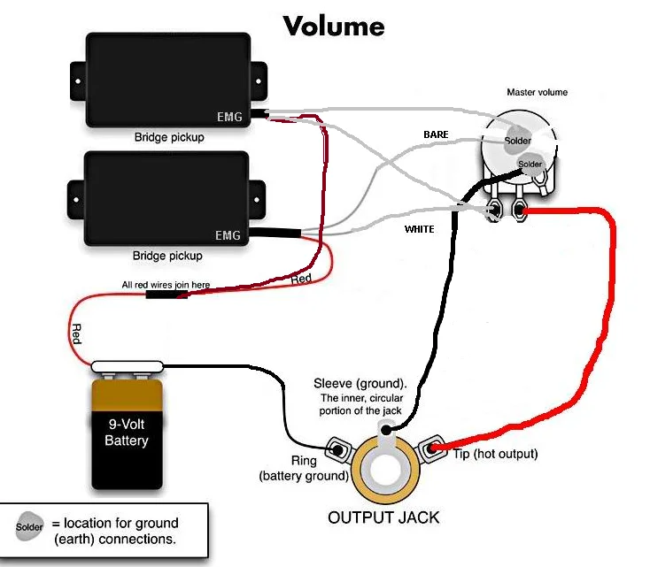 ich will meine vorhandene Bestückung von 2 Emg´s (81&85) 2 Volume,1 Tone und einem 3 Wege Toggle ändern,sodass ich nur noch die beiden Emg´s und einen Volume Regler habe.