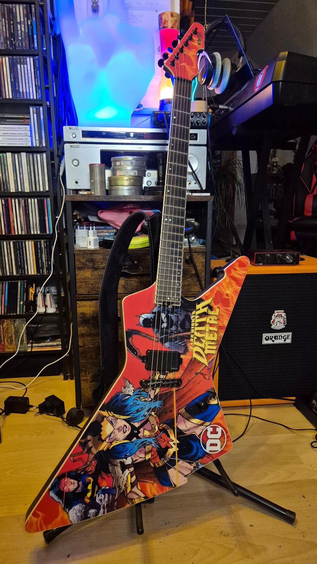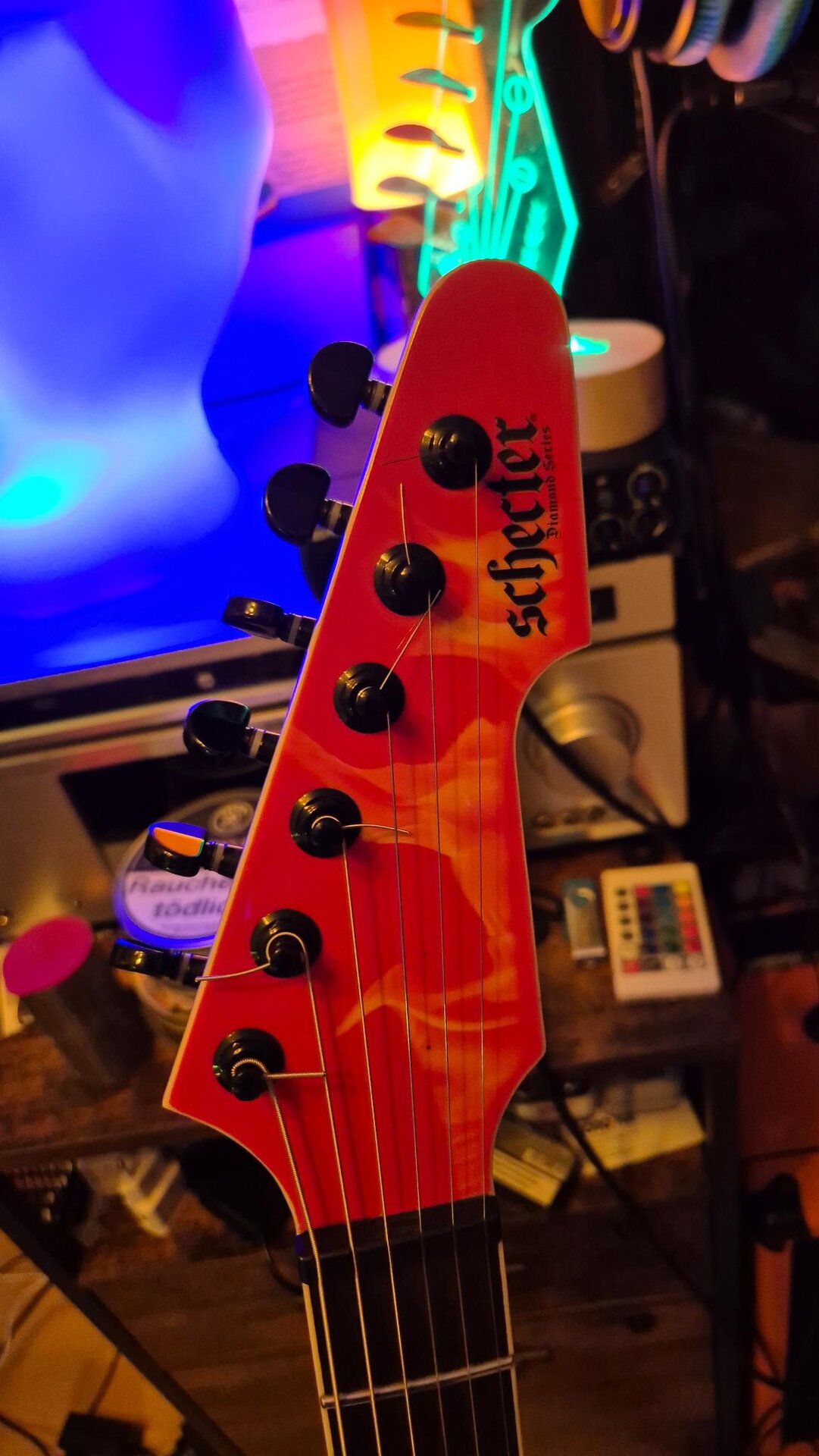 Ich würde nämlich vermuten, dass das kein spezifisches Schecter-Problem ist, sondern meine anderen Schecters wahrscheinlich auch irgendwo ihre Deadspots haben und mir das jetzt erstmals so aufgefallen ist. Auf meinem Schecter 8-String gibt es auch manche Töne, die schneller ins Feedback kippen (wobei es da auch am Bundstäbchen liegen könnte, habe das noch nicht überprüft, der 8-String ist aber auf jeden Fall im Laden vom Händler meines Vertrauens eingestellt worden). Und auf der standard-gestimmten Hellraiser gibt es Töne, die zwar nicht weniger Sustain haben, aber leiser sind als andere. Bei meiner SLS Elite trifft letzteres auf die Töne auf der hohen E-Saite ab ca. dem 17. Bund zu.